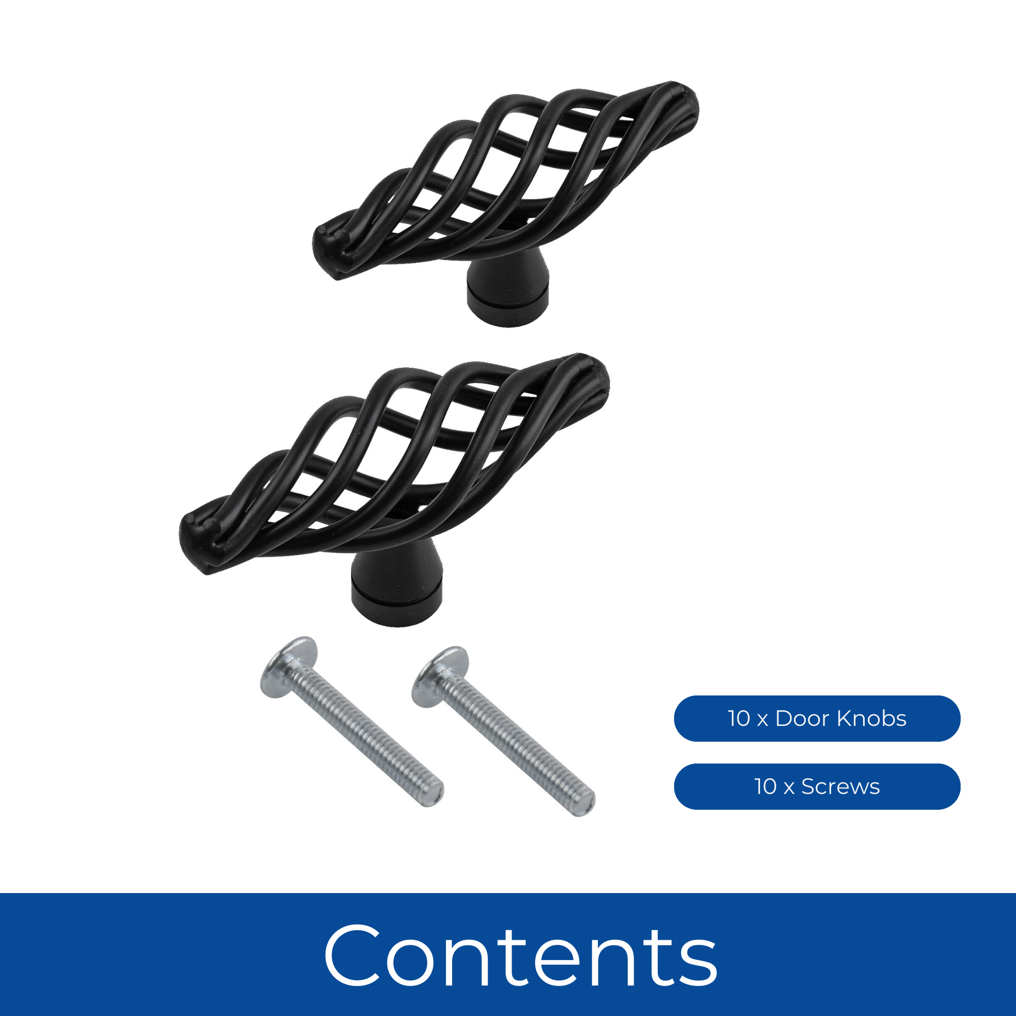 10 Pack Classic Cage Door Knobs 64mm Black – Decorative Steel Cabinet & Drawer Knob Handles