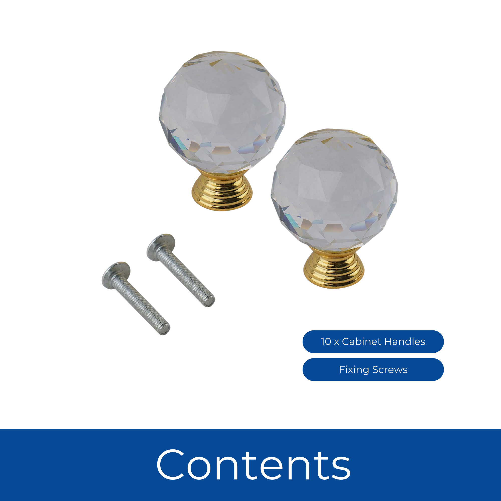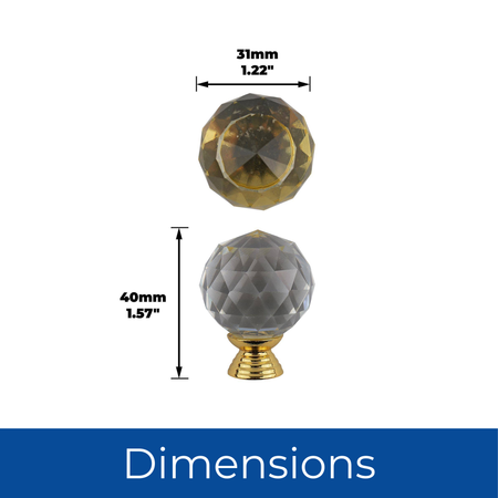 Elevate your furniture with this 30mm Crystal Ball Glass Cabinet Knob. Its sparkling faceted glass design catches and reflects light, adding a touch of luxury to drawers, cabinets, wardrobes, and cupboards. Paired with a sturdy metal base, this decorative glass knob combines beauty with durability. Perfect for modern, classic, or vintage interiors, it’s an easy way to refresh your furniture and bring a high-end look to any space. Supplied with fixings, installation is fast and hassle-free, making it ideal for DIY projects or furniture upgrades.