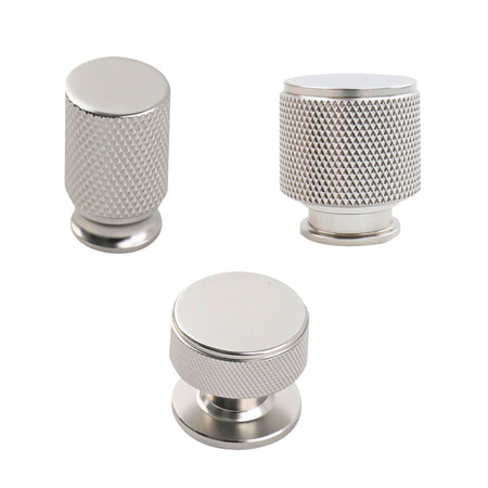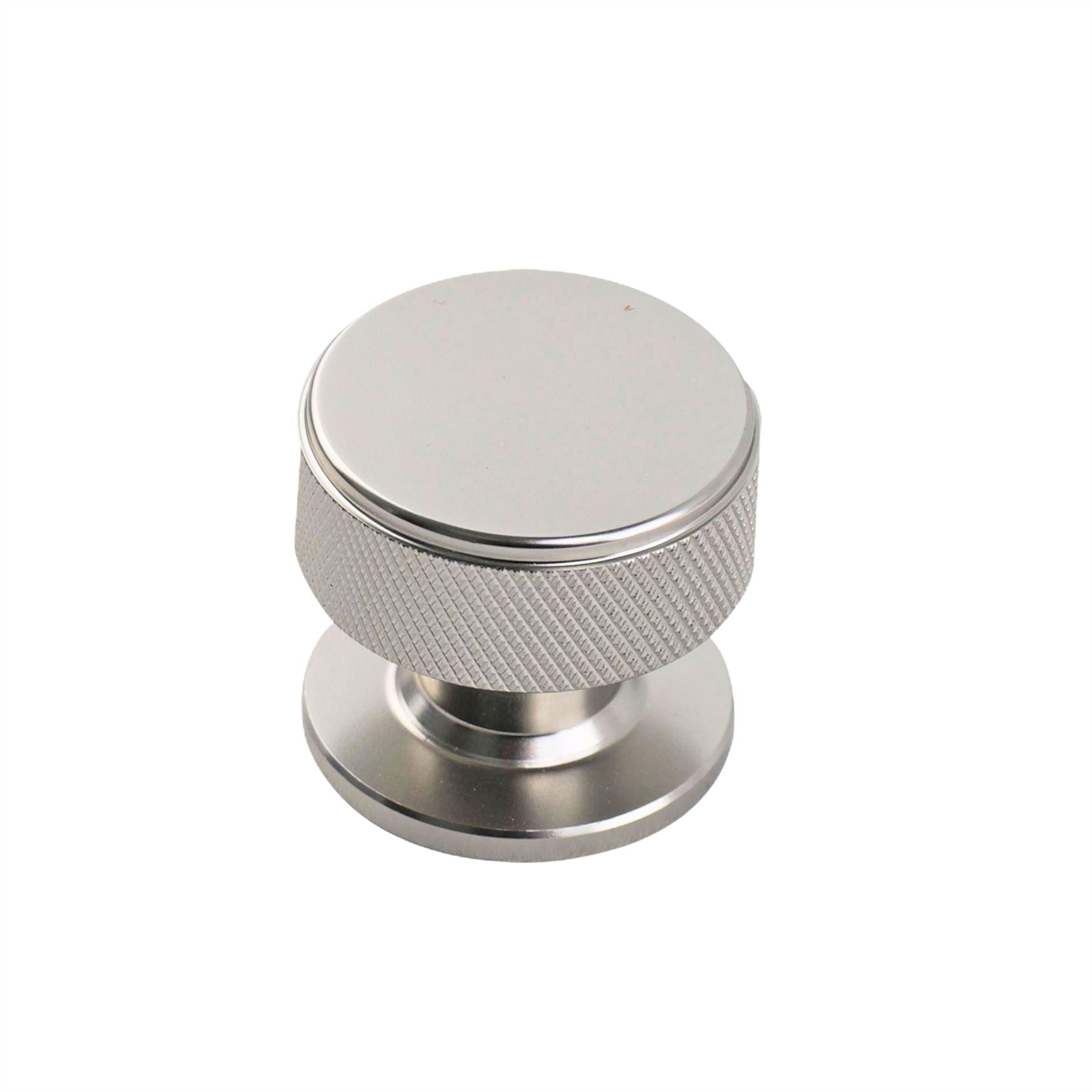KNURLED SATIN FINISH - Contemporary textured cabinet knobs designed to add industrial flair and a modern edge to your furniture.