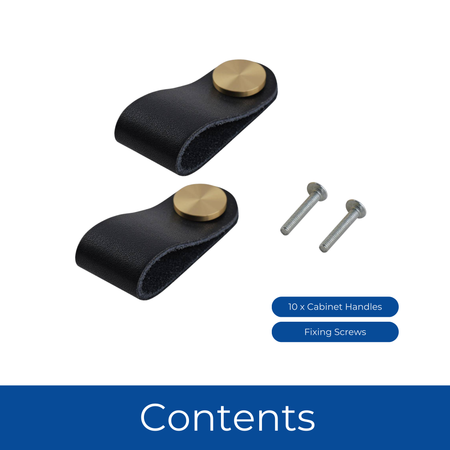 10 Pack Leather Pull Handles 60mm Black & Brushed Brass
