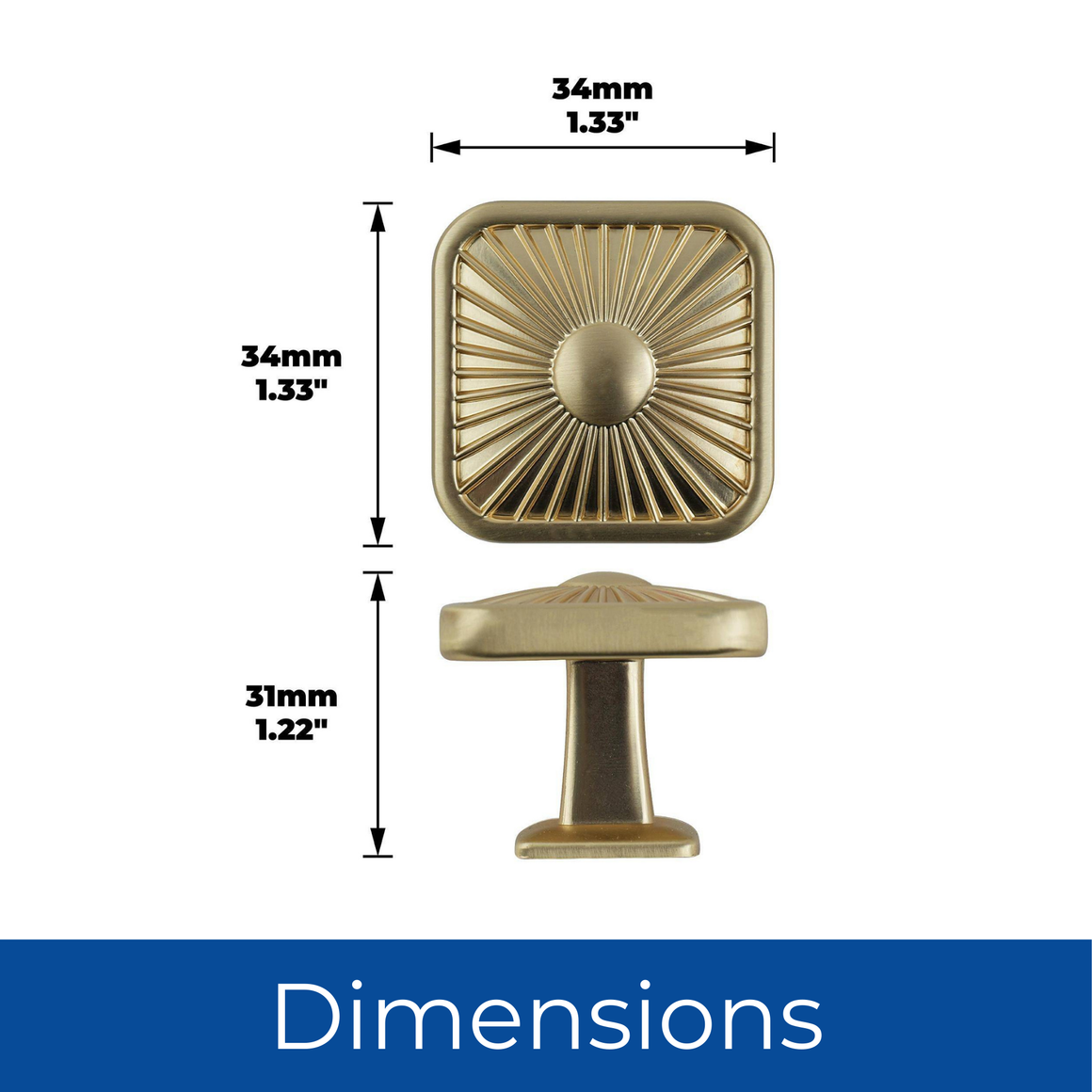 MODERN RIBBED DESIGN - Square brushed brass knob with ribbed detailing adds sophistication to cabinets, drawers, and furniture.