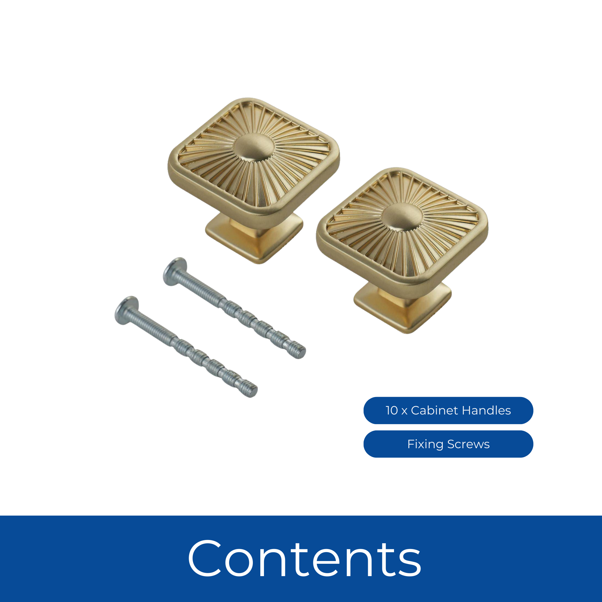 10 Pack Modern Chic Ribbed Square Knobs 35mm Brushed Brass