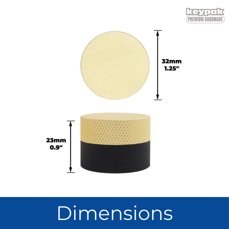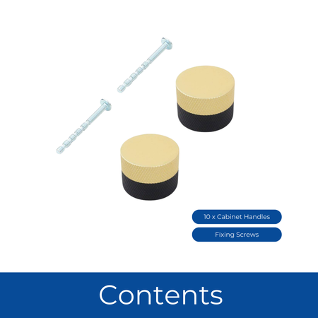 Upgrade your cabinets, drawers, and furniture with this Round Knurled Door Knob in a stylish 32mm size. Featuring a modern brushed brass and black finish, this knob adds a bold yet elegant touch to kitchens, wardrobes, drawers, cupboards, and other furniture. The textured knurled surface provides a secure, non-slip grip, combining style with functionality. Made from durable metal, this cabinet and drawer knob is built to last and perfect for DIY furniture updates or full room renovations. Supplied with all necessary fixings, installation is quick and effortless. Add a contemporary, high-end look to your home with this versatile furniture handle.