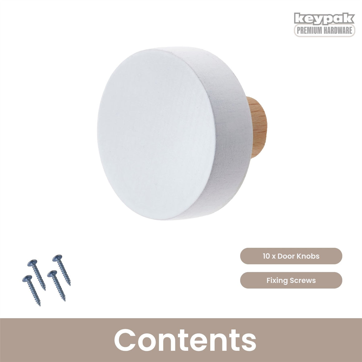 10 Pack Round White Door Knobs on Oat Stem 38mm – Beech Wood Door Knobs