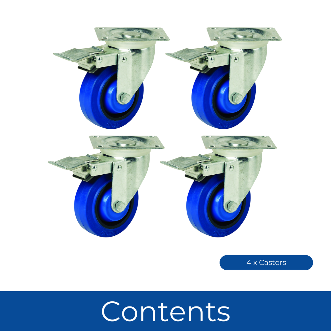 SECURE BRAKING SYSTEM - Fitted with a top plate and integrated brake, each castor locks firmly in place when needed. The brake adds control and security when positioning heavy loads, offering peace of mind during use.