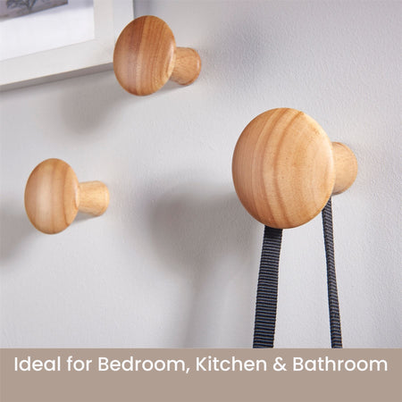 3 Wall Mounted Hooks 50mm Wood Decorative Coat Hooks