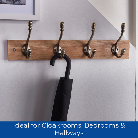 Sturdy & Reliable Construction - Designed to hold coats, bags, scarves, hats, and towels without bending or wear, thanks to reinforced brass fittings and a solid wood base.