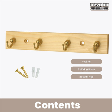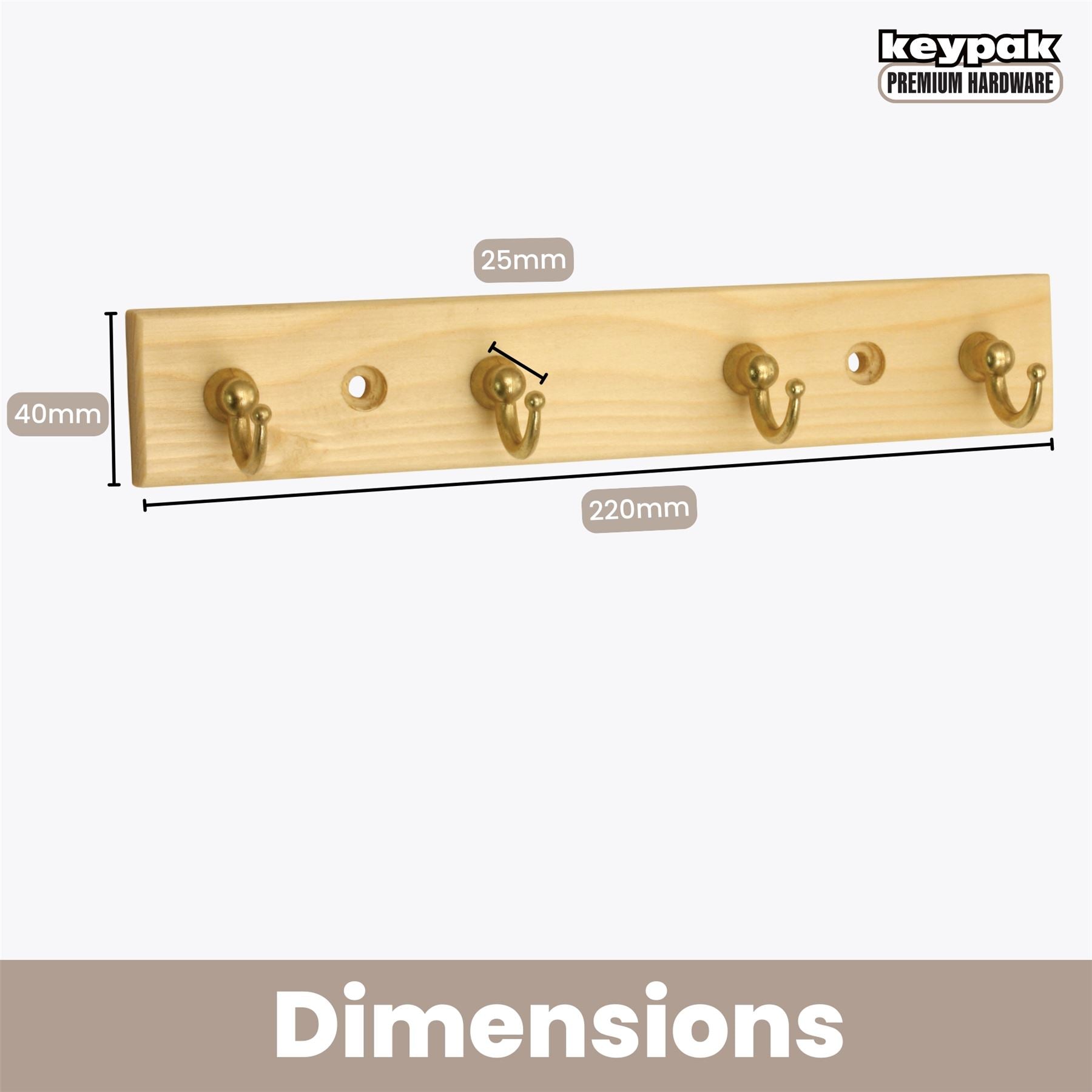 DIMENSIONS - 24cm (L) x 3. 5cm (H) x 4cm (D); Spacings Between - Hooks 6cm, Mounting Holes 21cm
