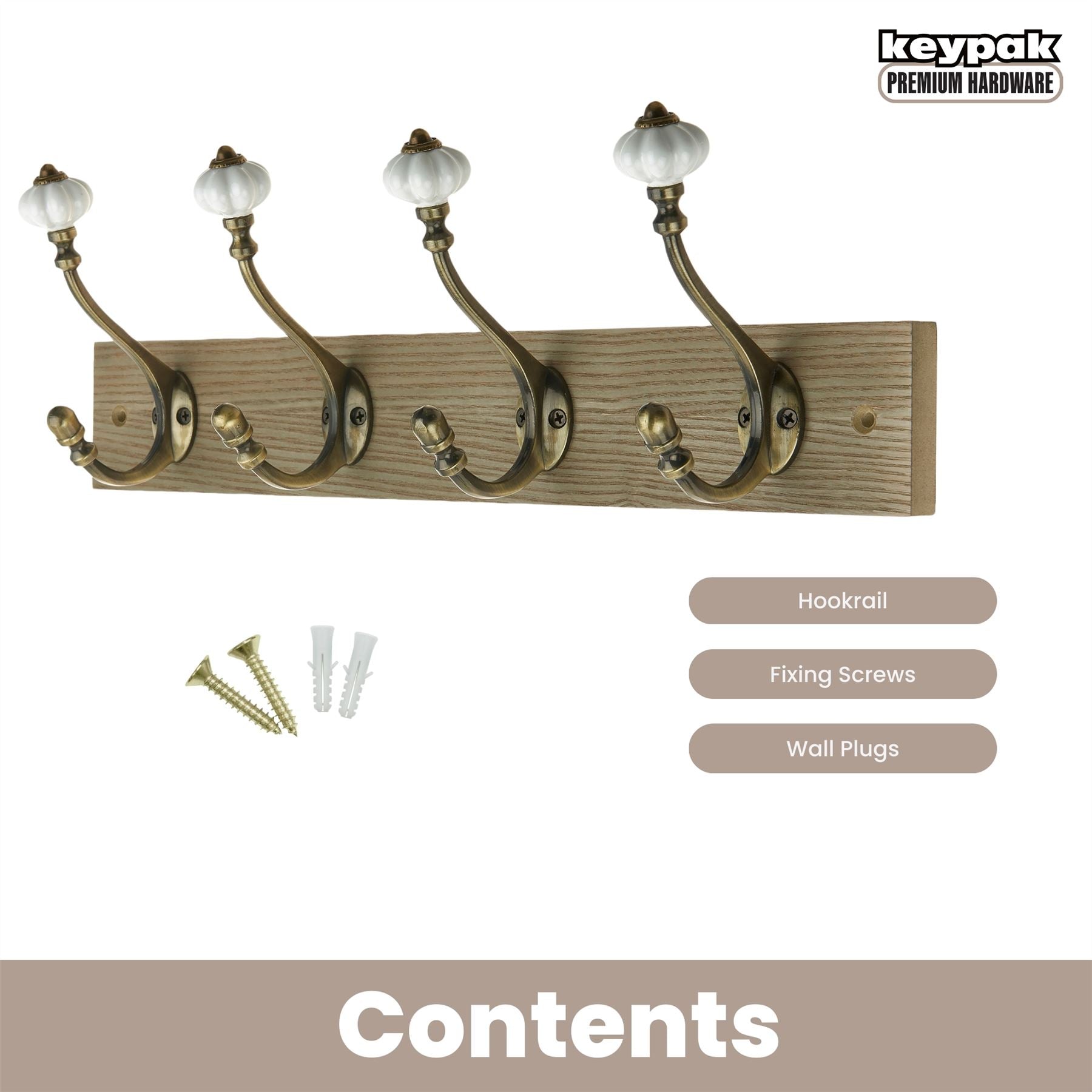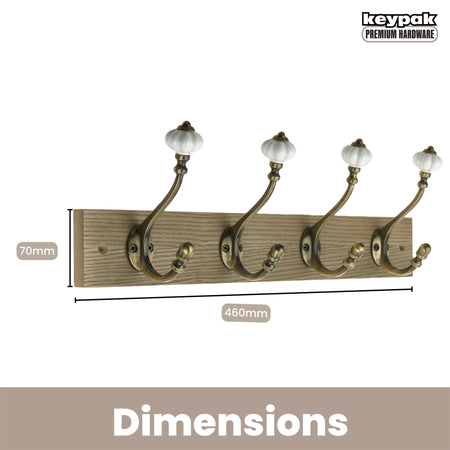 4 Ceramic Tip Hooks on Dark Rustic Wooden Board