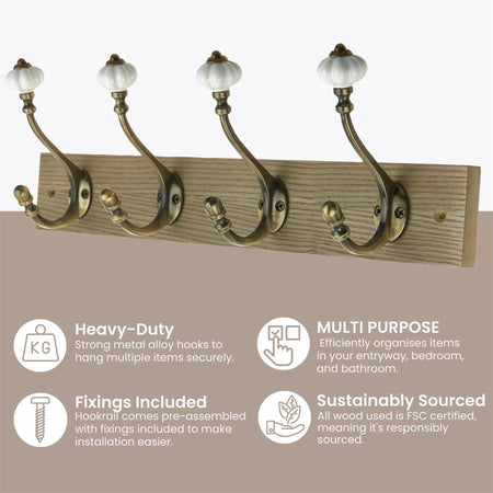 Sturdy & Reliable Construction - Designed to hold coats, bags, scarves, hats, and towels without bending or wear, thanks to reinforced brass fittings and a solid wood base.