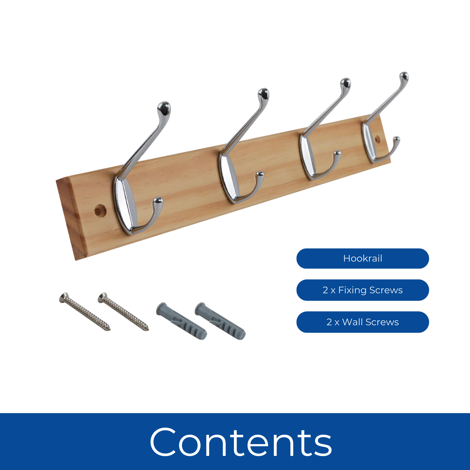 STYLISH FUNCTIONALITY - Features 4 polished chrome double hooks fixed on a solid pine board, offering ample space for coats and hats, making it ideal for entrance halls, bedrooms or cloakrooms.