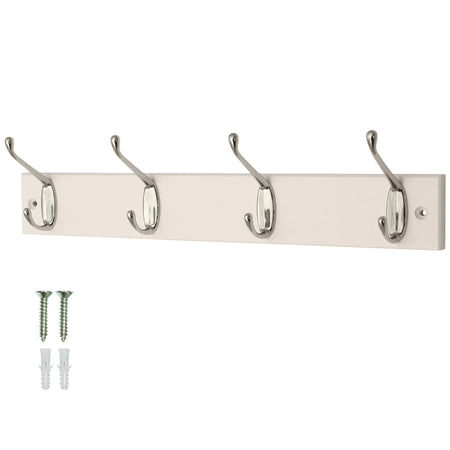 4-Hook Wall Mounted Coat Rack 45cm White Board-Double Chrome Hooks