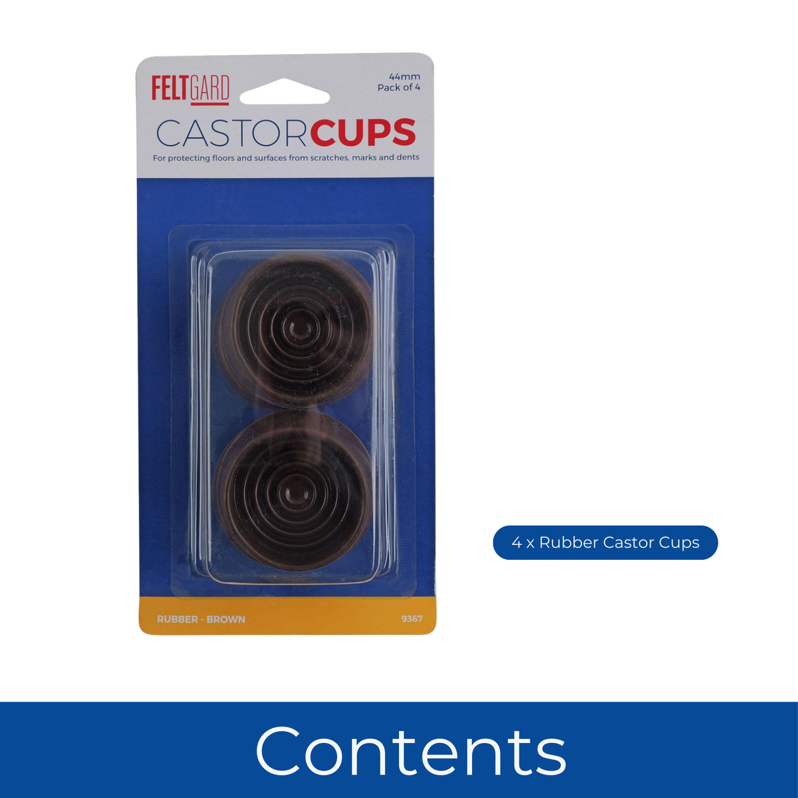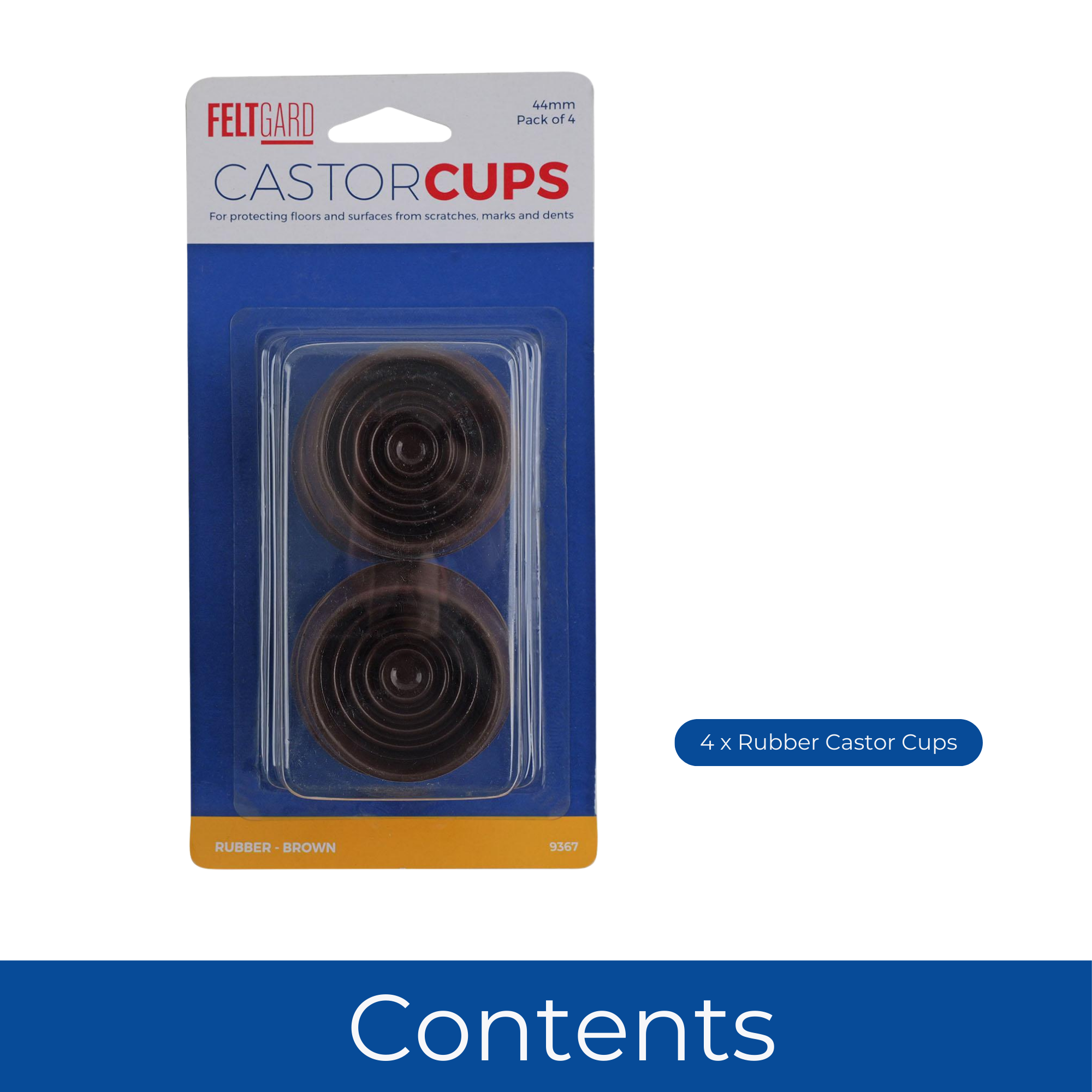 Secure your furniture and protect your floors with this set of 44mm brown rubber castor cups. Their soft, grippy material prevents slipping while blending nicely with darker wood tones, making them ideal for living rooms, bedrooms, and offices.