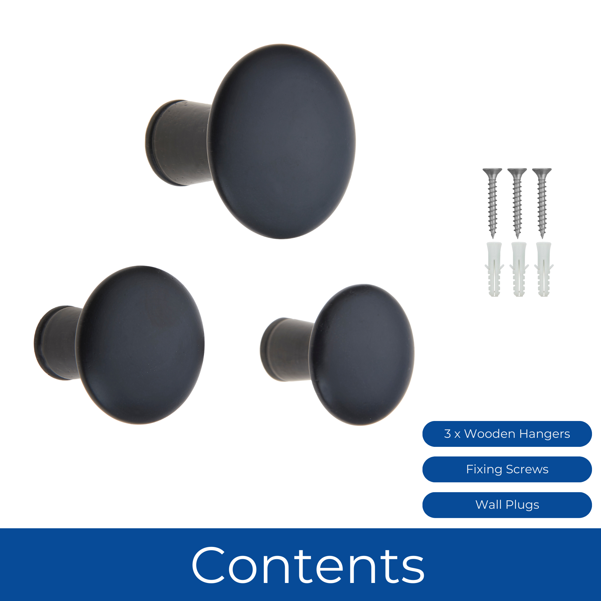 Elevate your walls with this modern set of 3 decorative black round hooks from Keypak. With minimalist appeal and solid screw-in construction, these wooden hangers are ideal for creating tidy, functional spaces. Whether mounted in a hallway for bags, in the kitchen for towels, or as an accent in a bedroom, their sculptural look offers stylish everyday practicality.