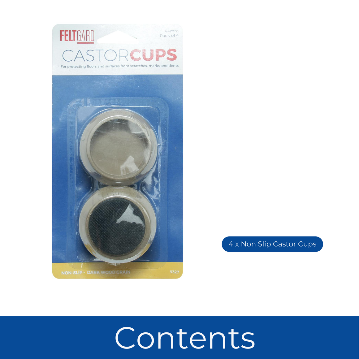 44mm Dark Wood Effect Non-Slip Furniture Castor Cups – 4 Pack