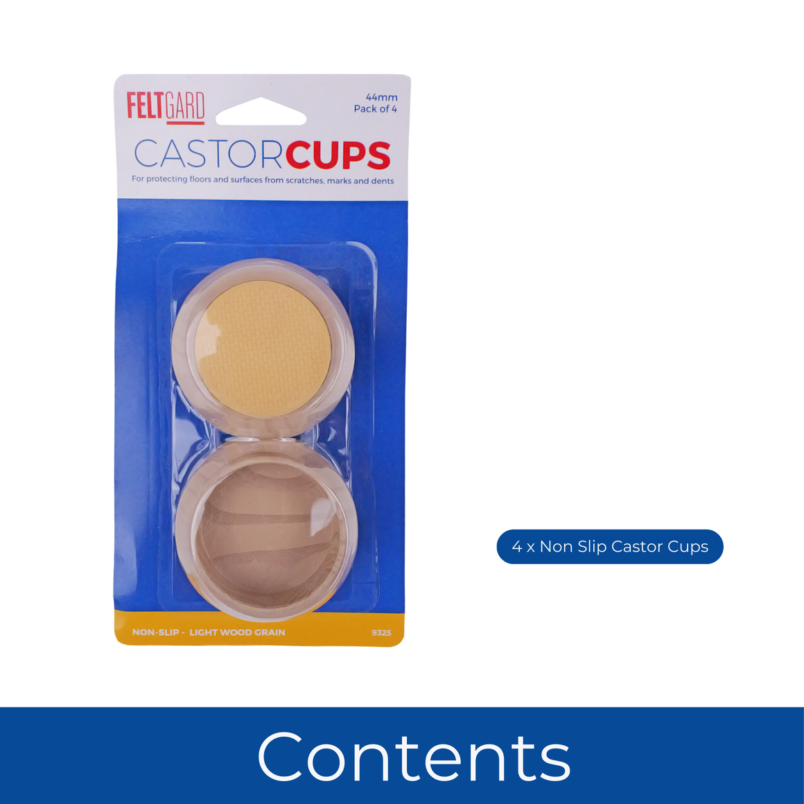 These 44mm castor cups feature a light wood grain effect and a non-slip base to keep furniture in place. They’re perfect for protecting light-coloured flooring from scuffs and scratches caused by moving chairs or tables. A quick and practical solution for everyday use.