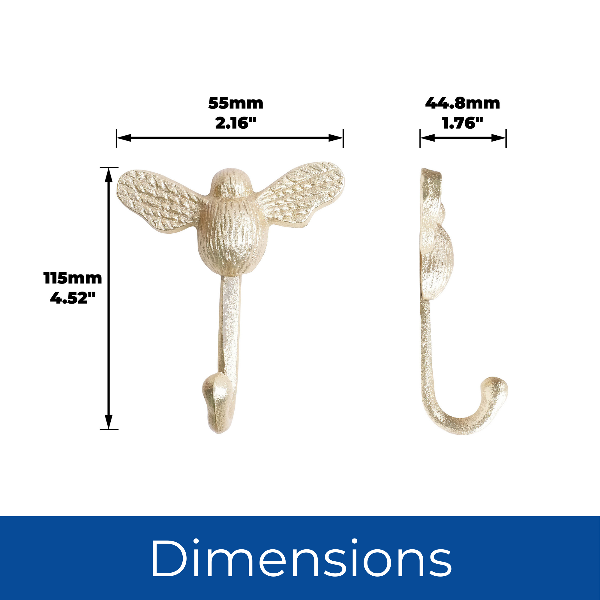 Our Bumble Bee Hook in Brushed Brass is more than just a simple hanging solution—it's a blend of form and function. This high-quality wall hook is meticulously crafted to offer both aesthetic appeal and robust, long-lasting performance. Whether you're a DIY enthusiast or a professional, this versatile hook is engineered to support a variety of hanging needs. Its durable construction provides a secure and practical solution for tools, artwork, and accessories in your workshop or garage. In the home, it serves as a sleek and modern coat or robe hook in entryways, bathrooms, or kitchens. The refined brushed brass finish provides a sophisticated touch that complements diverse interior styles, from modern minimalist to classic industrial. With its reliable construction and easy installation, the Bumble Bee Hook is an essential piece of hardware designed to simplify organization and enhance your space with a touch of timeless elegance.