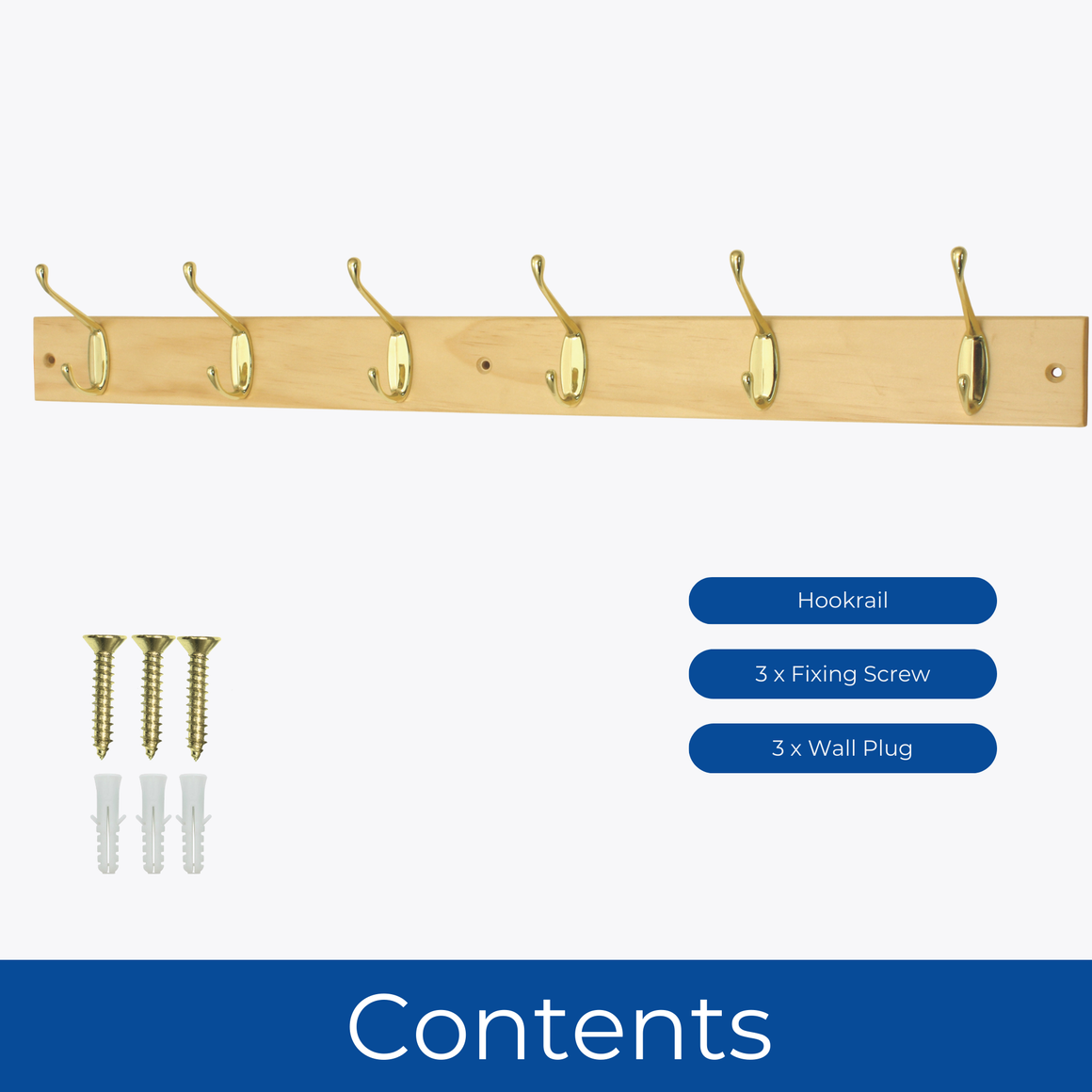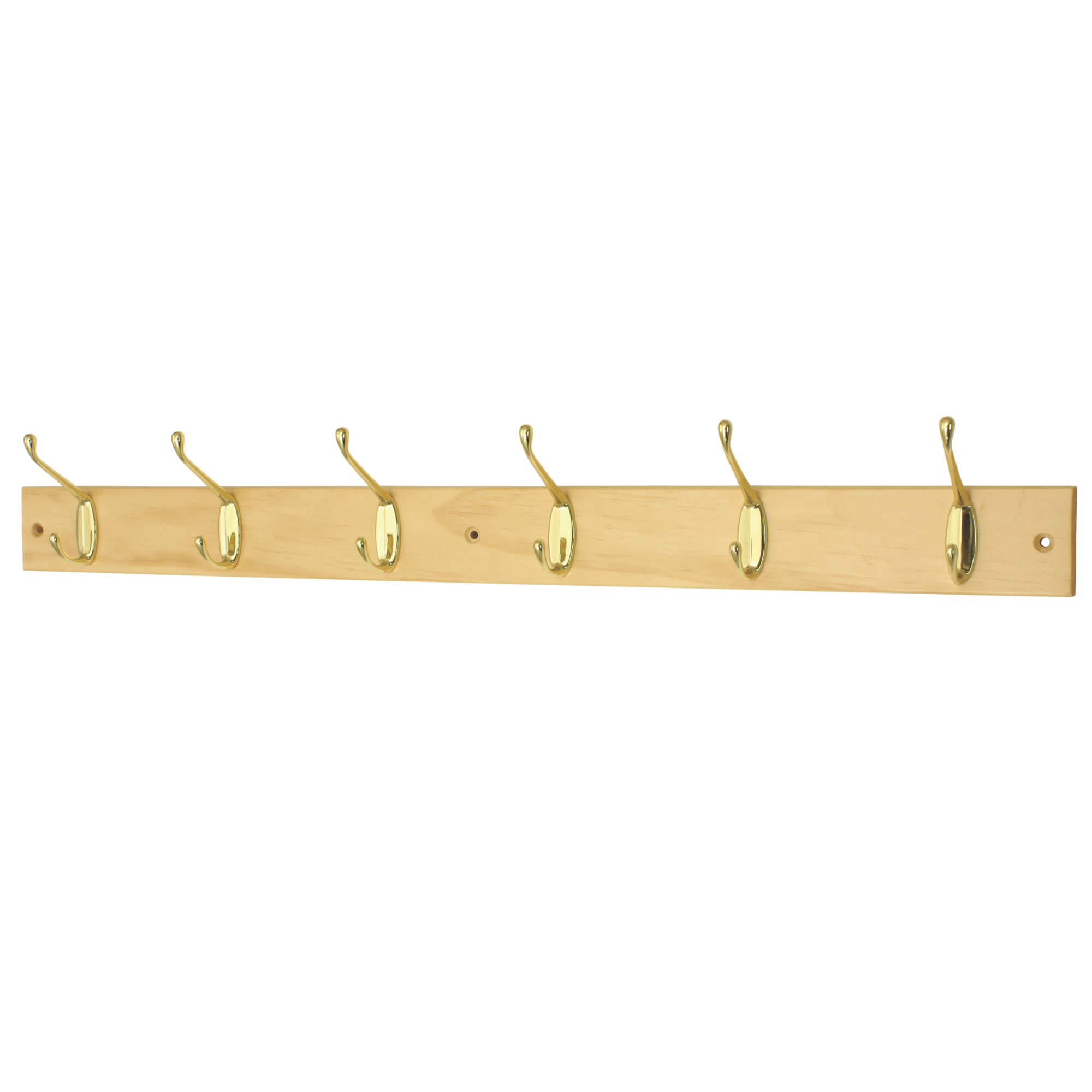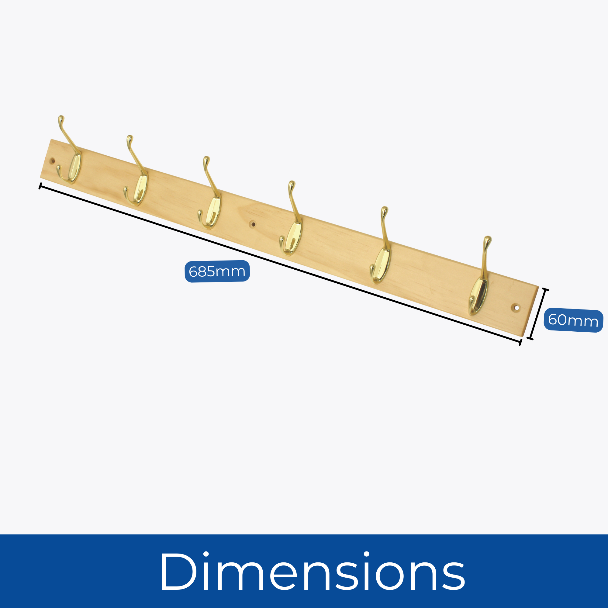 6-Hook Wall Mounted Coat Rack-690mm Solid Pine Board-Double Brass Hooks