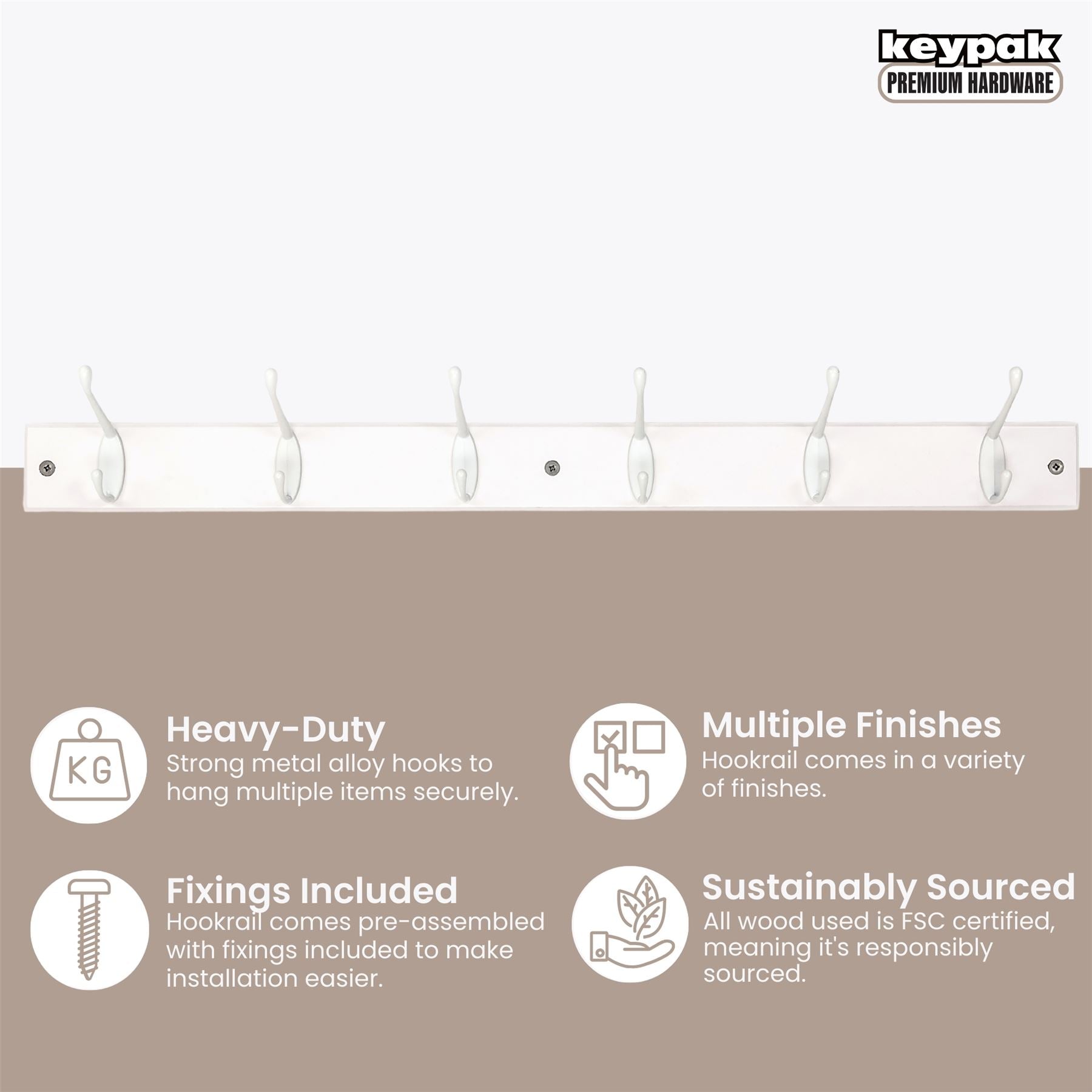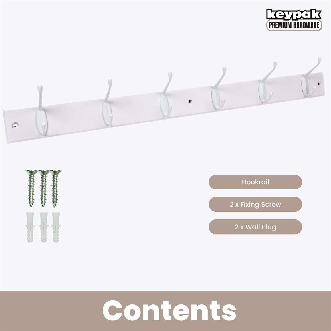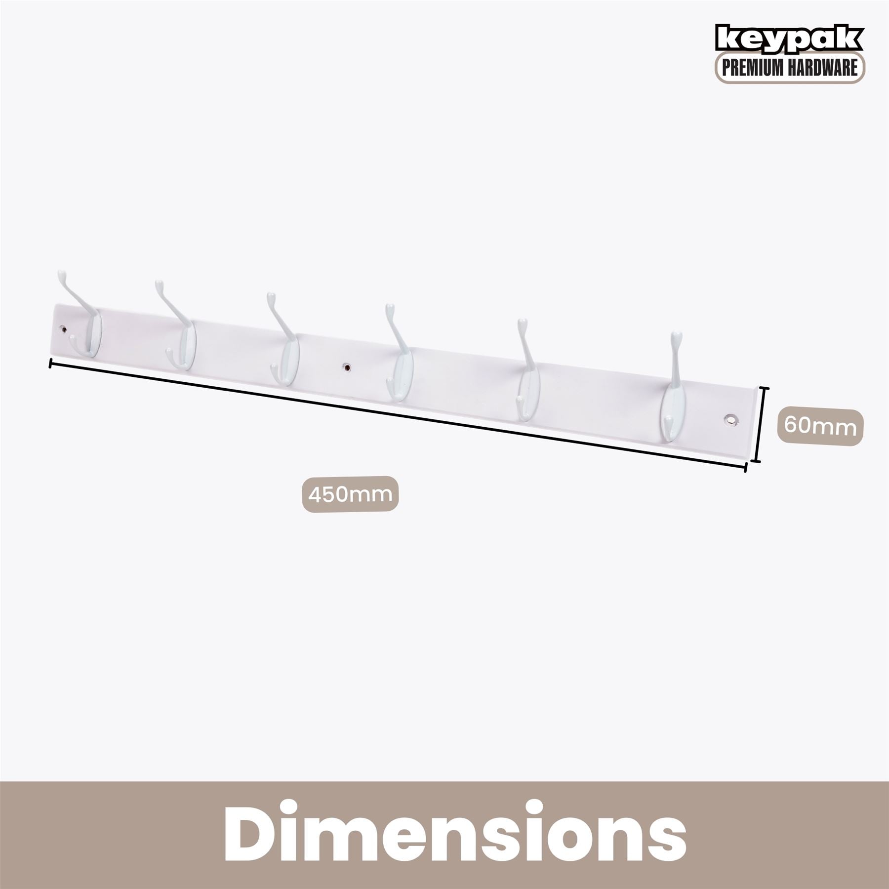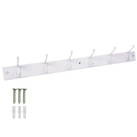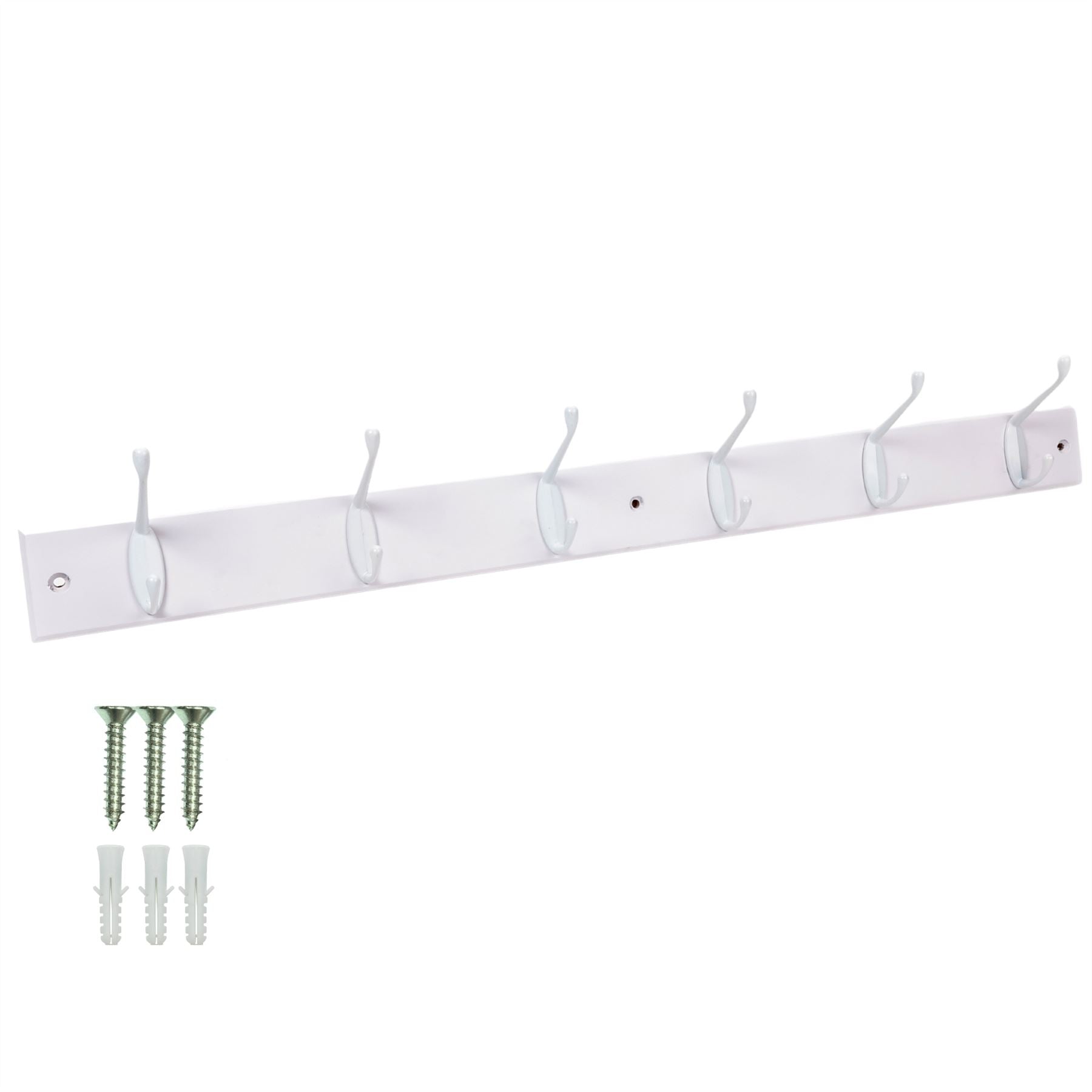 6-Hook Wall Mounted Coat Rack White Board, Double White Hooks
