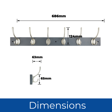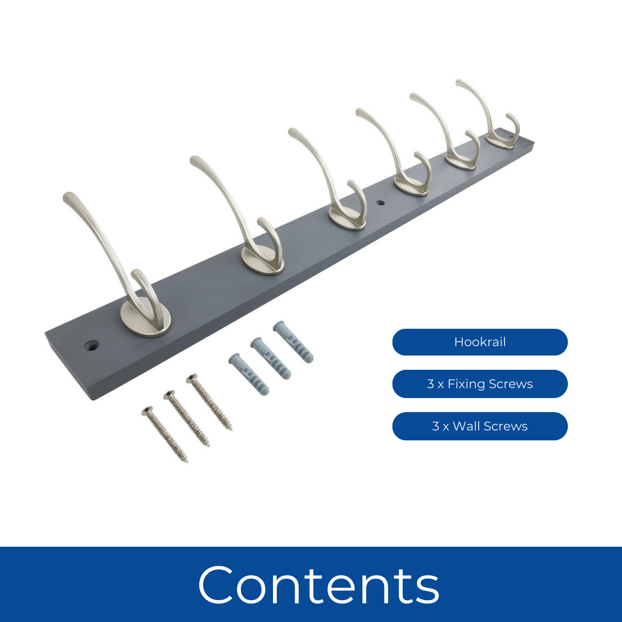 Slate Grey Wall Mounted Coat Rack with Victorian Satin Nickel Hooks - 6 Double Hooks