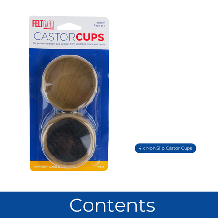 60mm Dark Wood Effect Non-Slip Furniture Castor Cups – 4 Pack