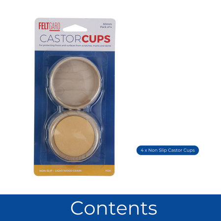 60mm Light Wood Effect Non-Slip Furniture Castor Cups – 4 Pack