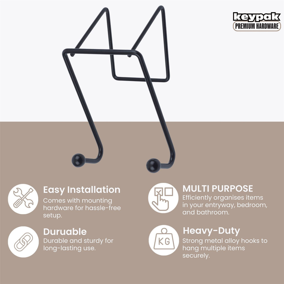 Subtle, strong, and superbly simple, the Keypak 2 Hook Over The Door Hanger is a space-saving solution for homes where practicality meets considered design. Finished in a sleek matte black and measuring just 15cm in width, this hanger is ideal for smaller doors or more focused needs-think robes behind a bathroom door, scarves in the hallway, or handbags in the bedroom. The two curved metal hooks are designed to hold coats, hats, towels, or bags securely, while their smooth black finish adds a touch of contemporary elegance. Made from robust steel, it fits snugly over most standard internal doors without the need for screws or drilling-perfect for renters, students, or anyone seeking instant organisation. With its compact profile and minimalist aesthetic, this hanger delivers everyday functionality without visual clutter, offering a refined way to manage daily essentials in any room of the home.