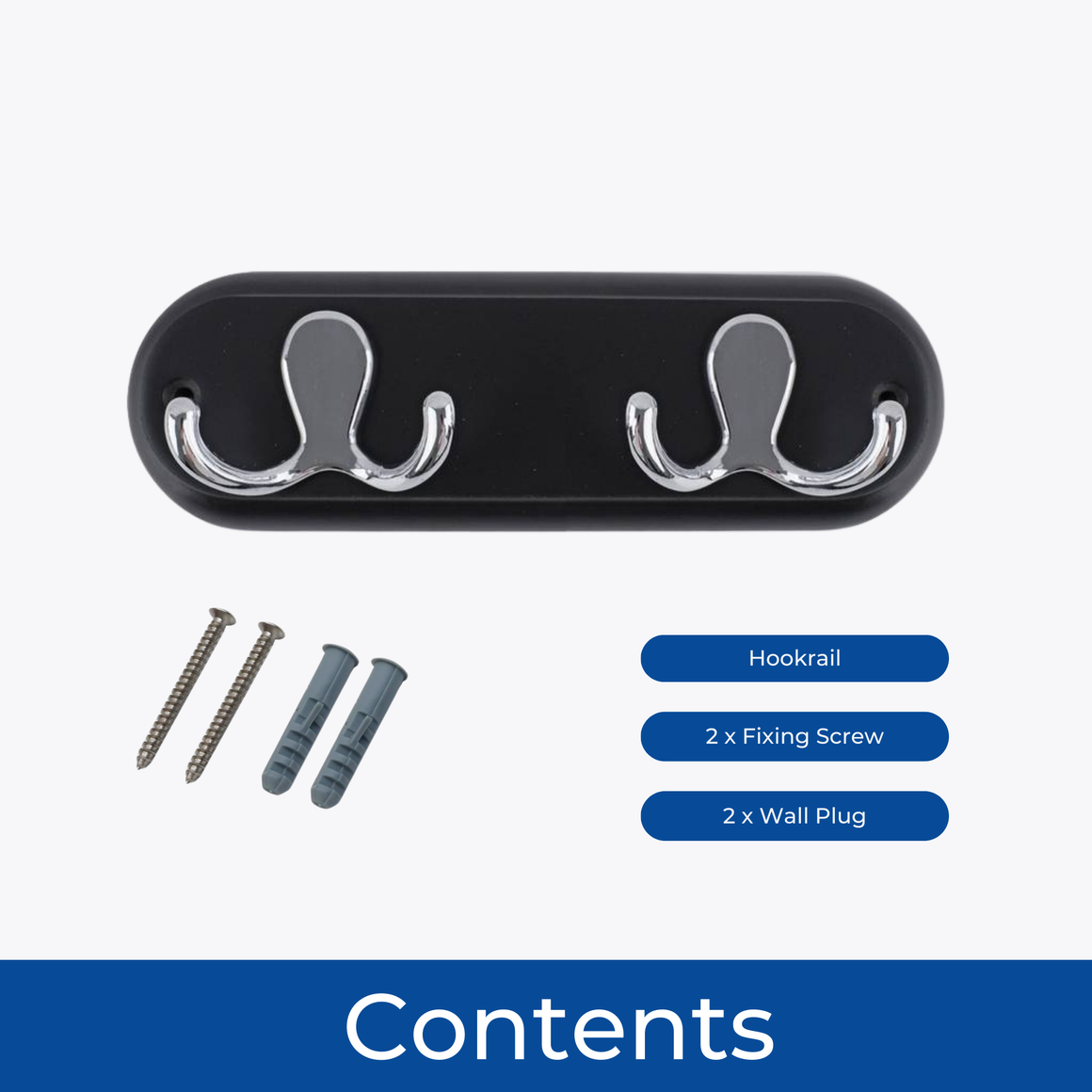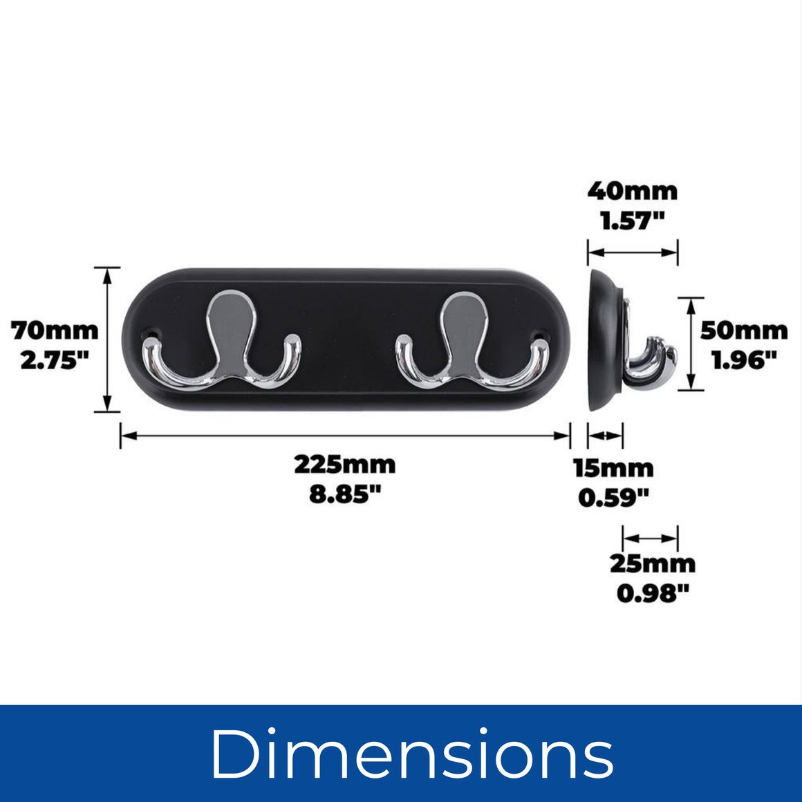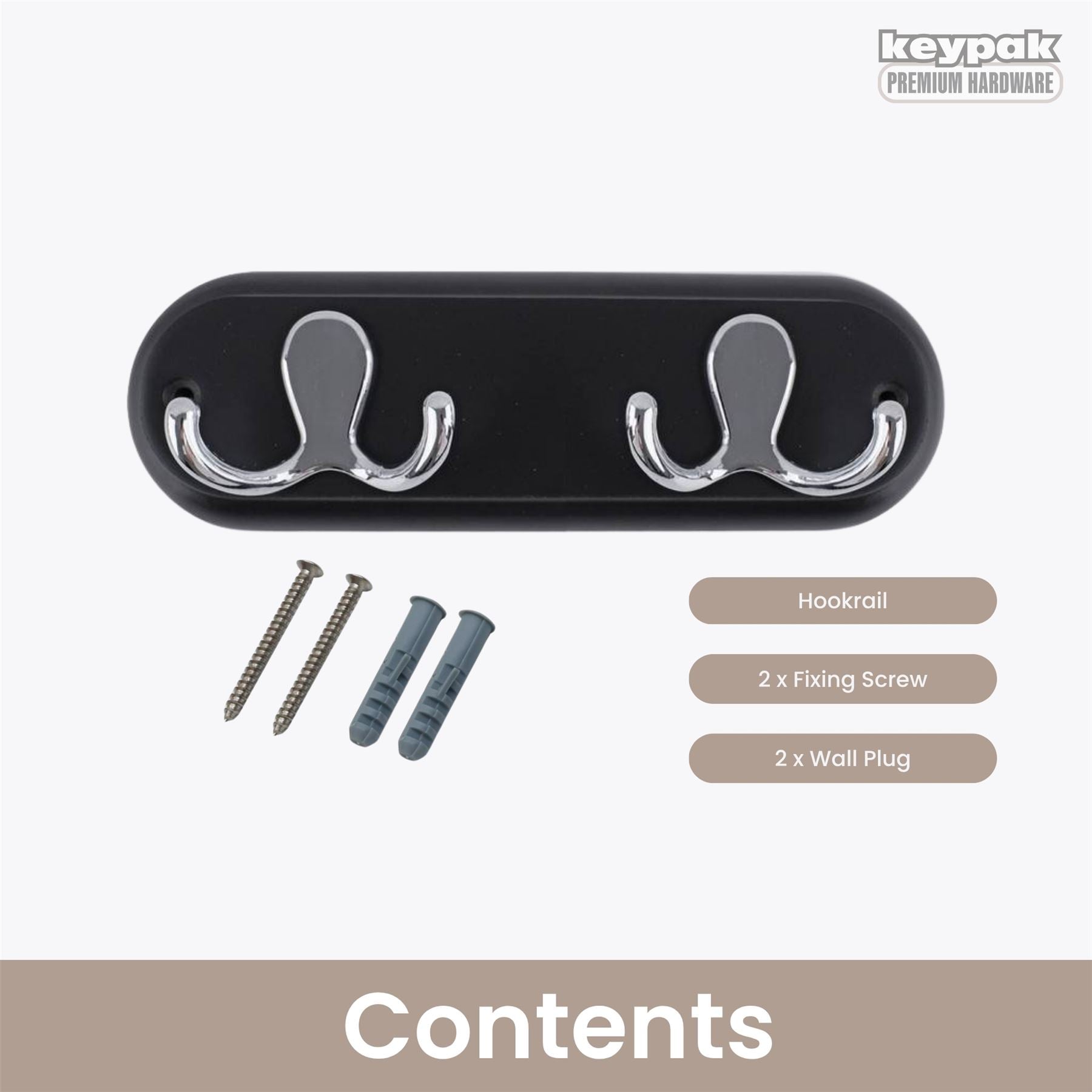 STYLISH & SPACE-SAVING: Compact 22.5cm black board with two polished chrome double hooks, ideal for hanging coats, jackets, hats, robes, dressing gowns, bags and towels.