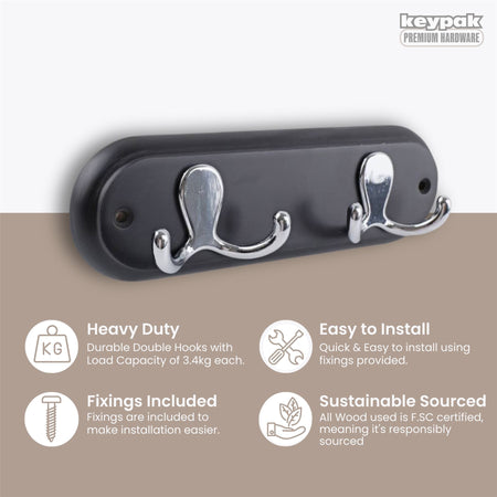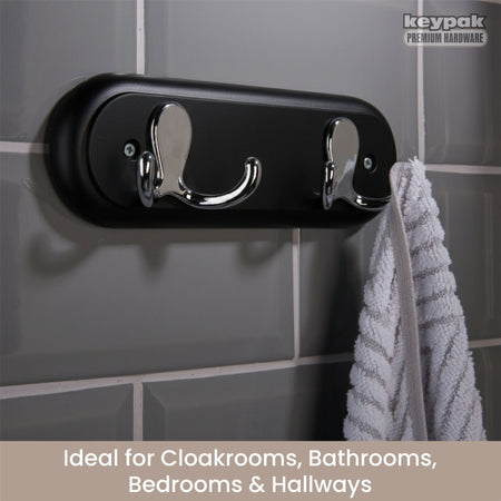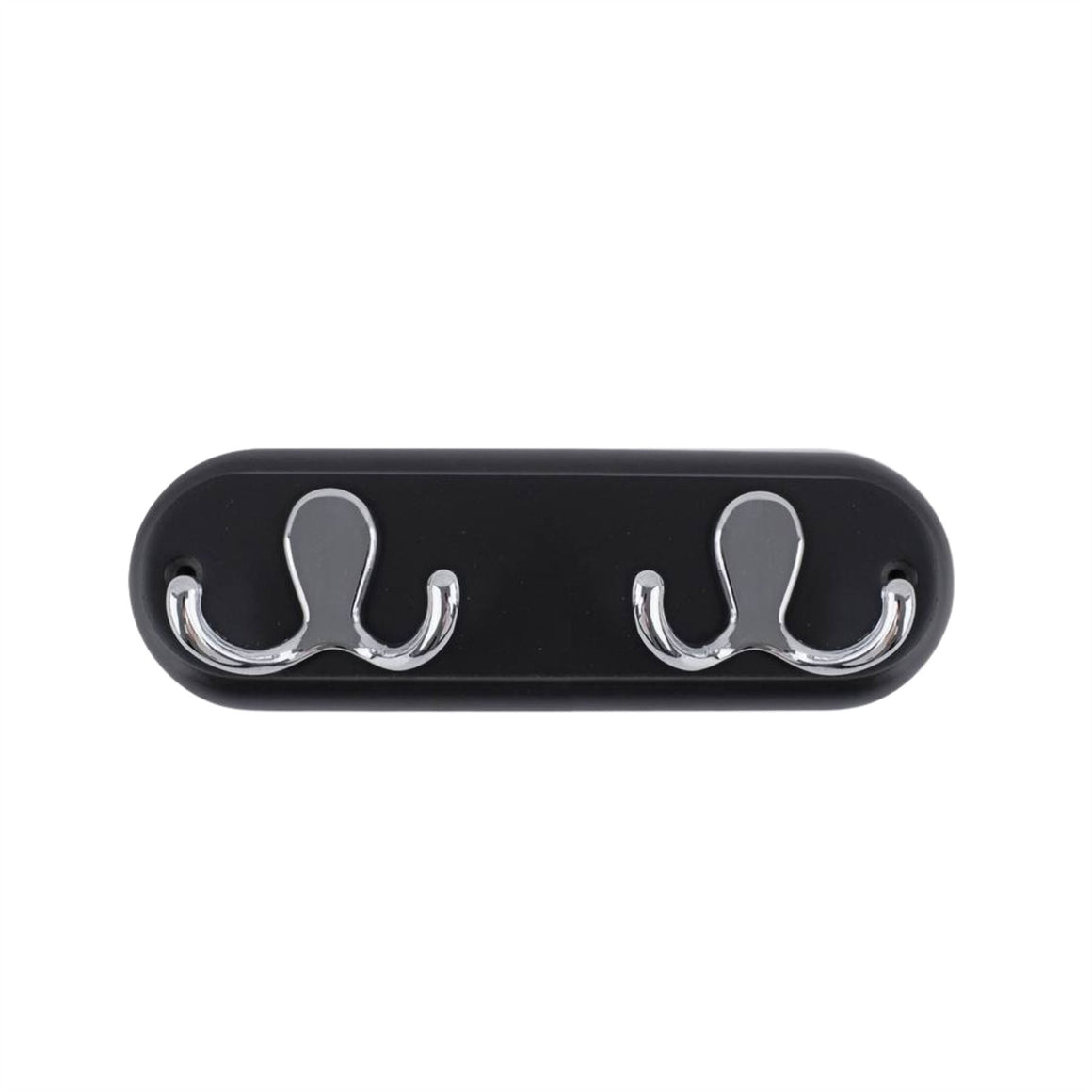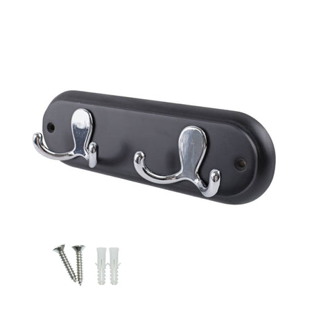 Black Wall Mounted Coat Rack with Chrome Hooks - 2 Double Hooks