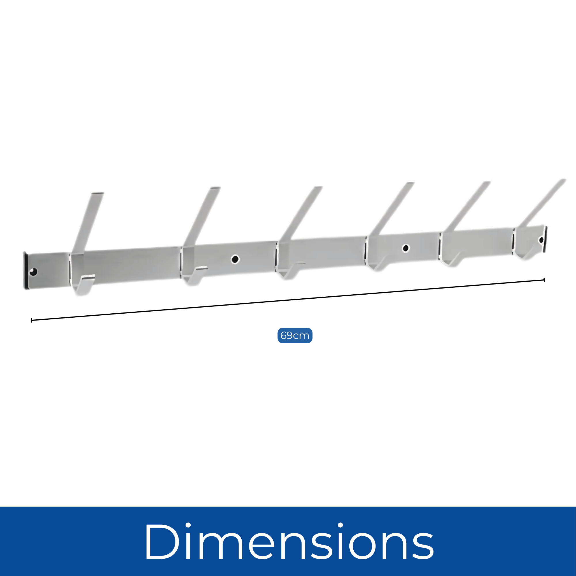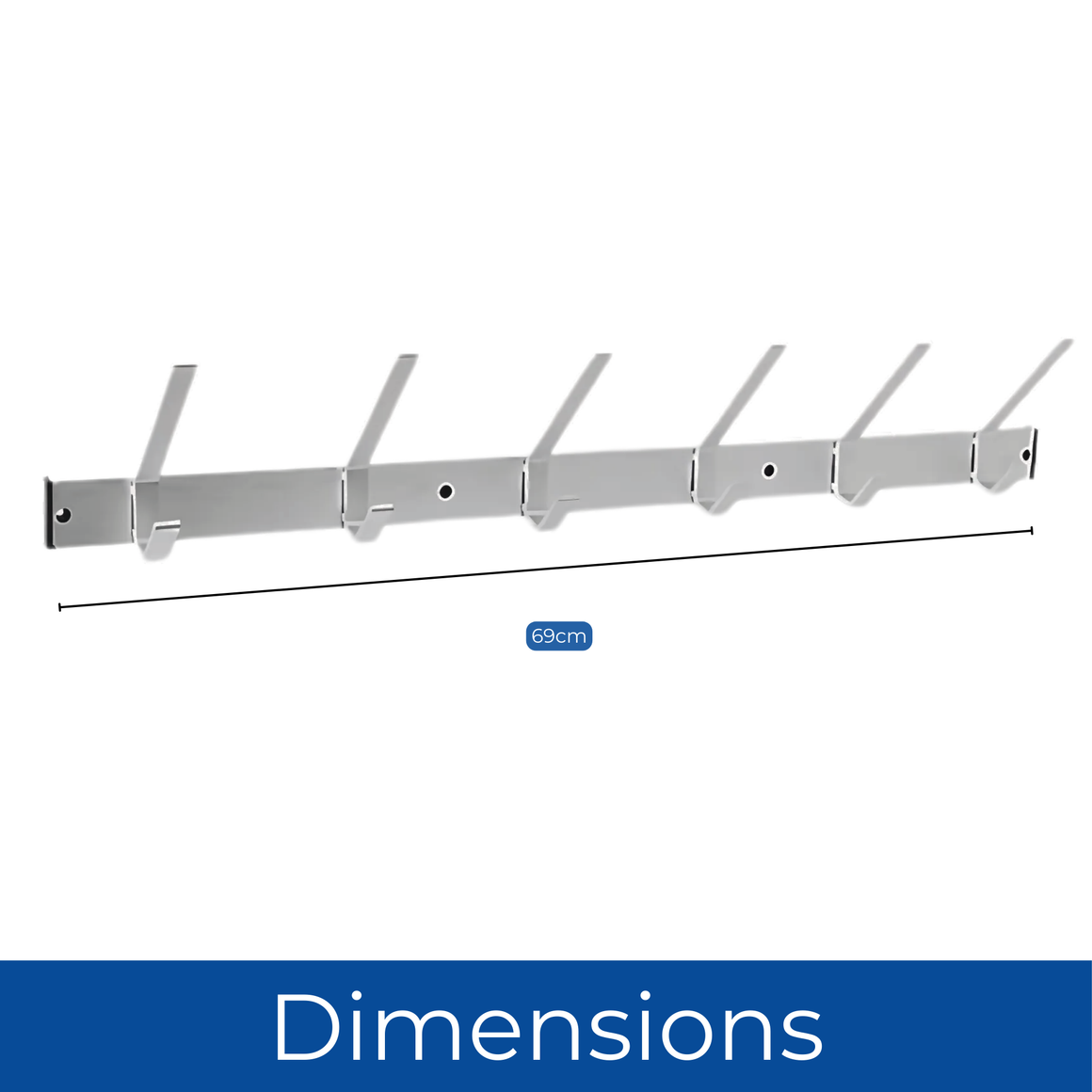 SIX HOOKS FOR MAXIMUM - UTILITY Featuring six evenly spaced hooks across its 690mm width, this hanger offers ample storage for organising tools, bags, jackets, and other essentials, helping you declutter your workspace. SPACE-SAVING WALL-MOUNTED DESIGN