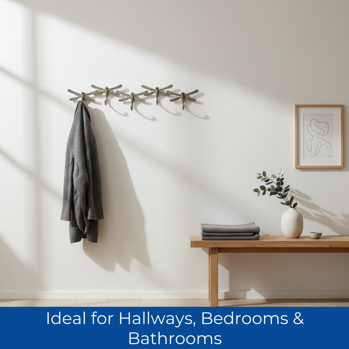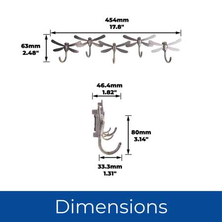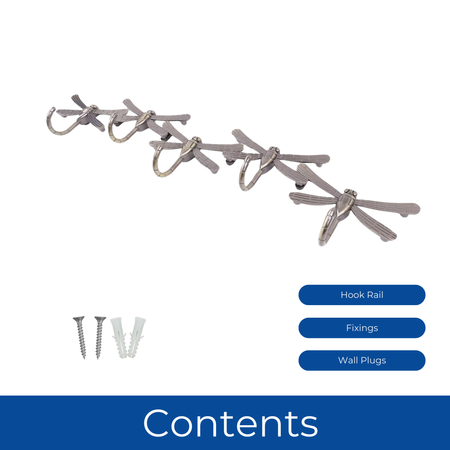 Bring style and functionality to your home with the Brushed Brass Dragonfly Hook Rail. Featuring a durable metal frame and a tarnish-resistant brushed brass finish, this wall-mounted hook rail blends decorative charm with practical storage. Ideal for coats, hats, keys, towels, or accessories, it offers a versatile solution for kitchens, laundries, entryways, and living areas. The dragonfly design adds a subtle decorative element, making it a standout piece in any interior setting. Designed for easy installation, the hook rail comes with standard fixings for secure wall mounting. Its sturdy construction ensures long-lasting performance, making it an excellent choice for DIY enthusiasts and homeowners looking to combine elegance with everyday organisation.
