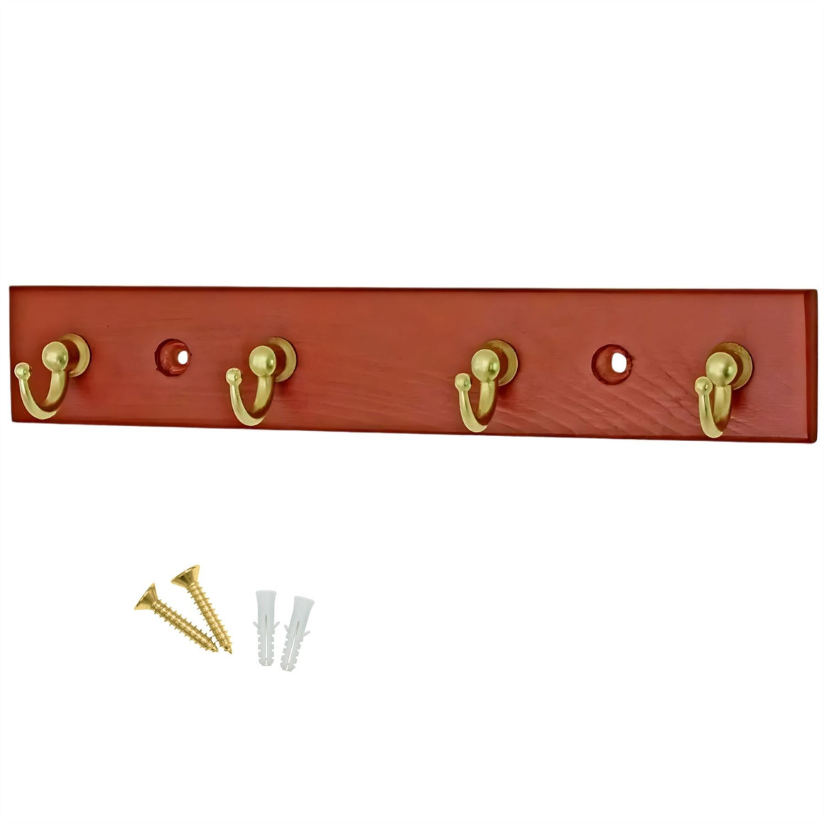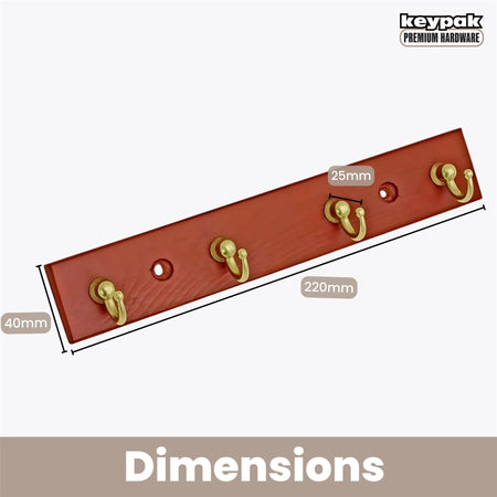 Keep your space tidy with our wall-mounted key hanger, designed to organise and declutter with ease. Featuring 4 cup-shaped hooks, it’s perfect for storing smaller items like keys, tea towels, or necklaces. With a minimalistic design, this key tidy comes in pine or Mahogany Effect with hooks, and a sleek board with a softened stepped bullnose edge. Made from advanced heavy-duty materials, it combines sturdiness with lightweight convenience. The eco-friendly wood is sourced from well-managed forests, ensuring a responsible choice. Pre-assembled with wall plugs and screws included, installation is quick and straightforward. Dimensions are 24cm (L) x 3.5cm (H) x 4cm (D), with 6cm spacing between hooks and mounting holes 22cm apart.