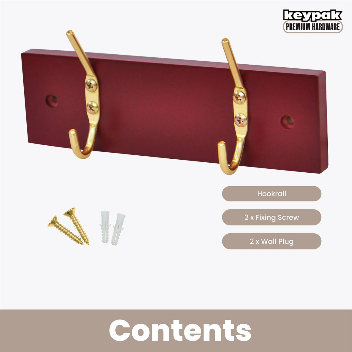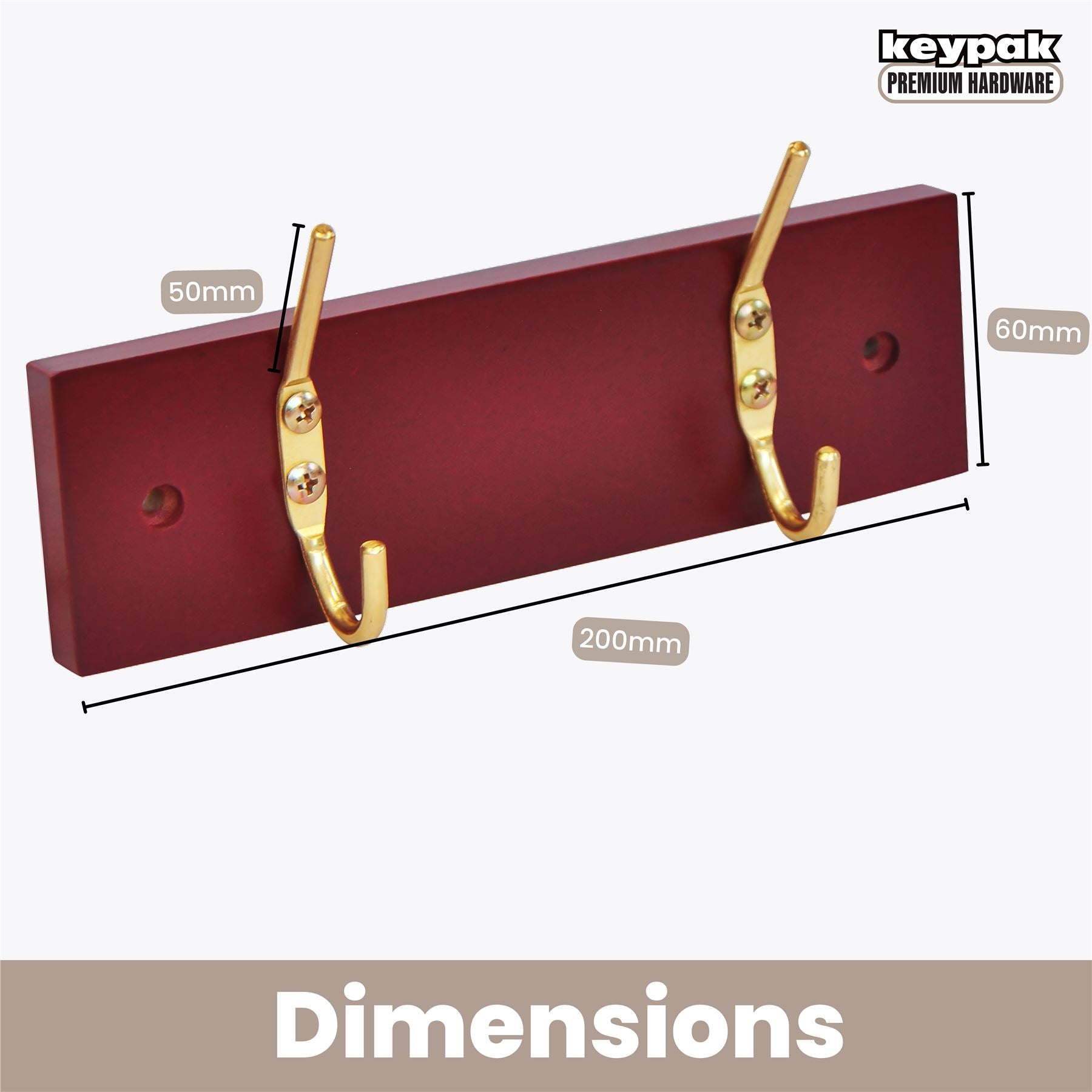 2 Brass Coat Hooks on Mahogany Wooden Board