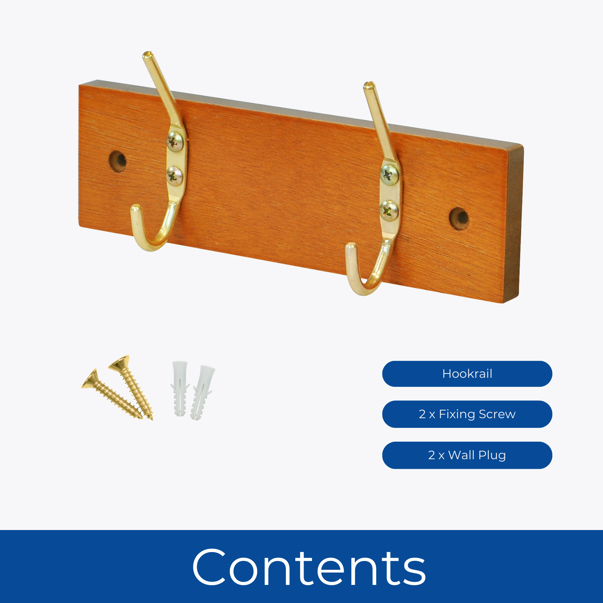 2-Hook Door Wall Mounted Coat Rack, 19.5cm - Pine Wooden Board, Brass Coat Hooks
