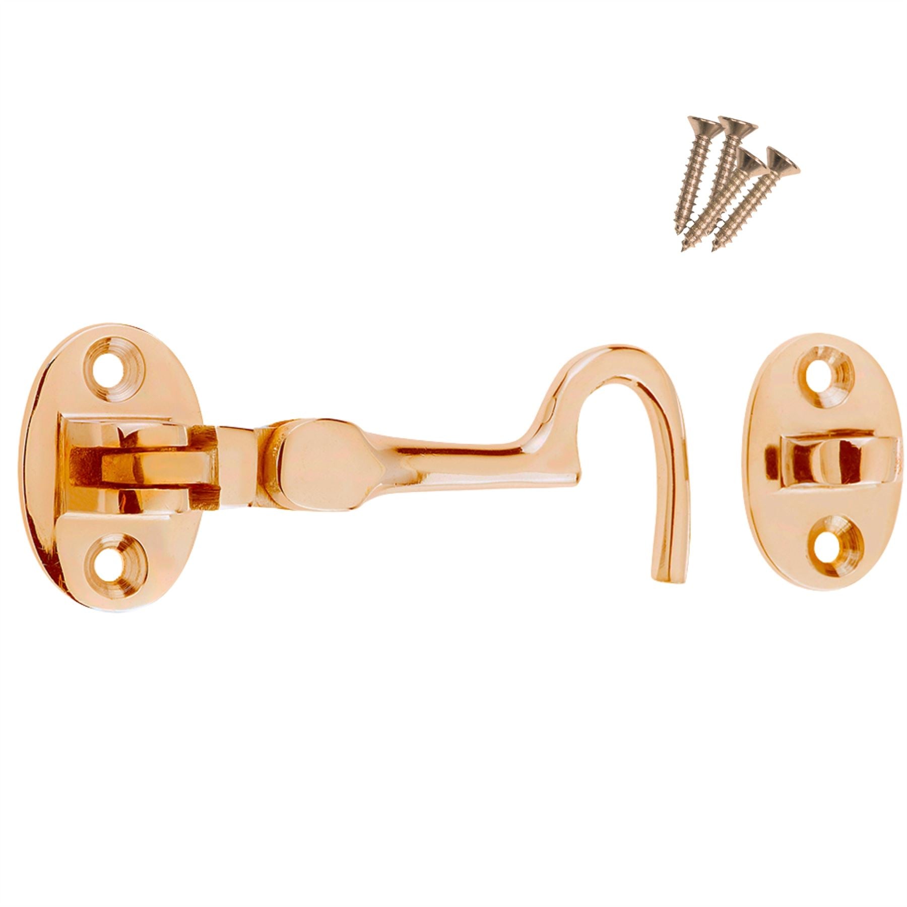 Cabin Hook Eye Latch 3 Inch (75mm) Gate & Door Lock - Polished Brass