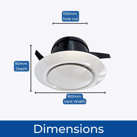 VERSATILE MOUNTING - Ideal for mounting on ceilings, this 100mm adjustable vent is perfect for bedrooms, bathrooms, kitchens, caravans, and air conditioning systems. A versatile addition to any ventilation setup.