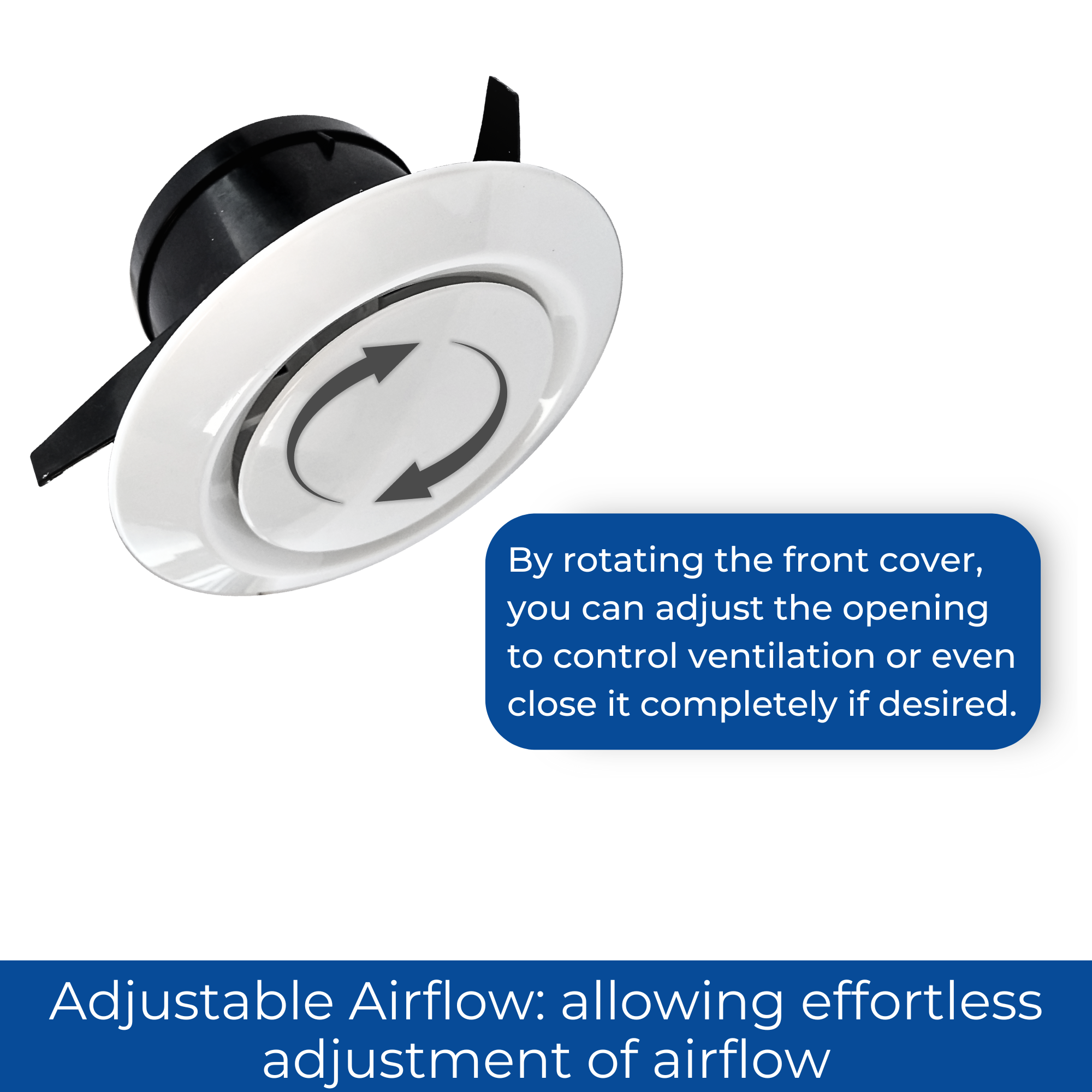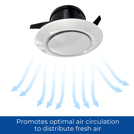 ADJUSTABLE AIRFLOW CONTROL - Easily adjust the center of the 4" ceiling diffuser to control airflow. Rotate to open for maximum ventilation or close to reduce airflow completely. With a 100mm diameter opening, this ceiling vent cover allows for efficient airflow, providing 2400mm² free air space, ensuring superior ventilation for your home or caravan.