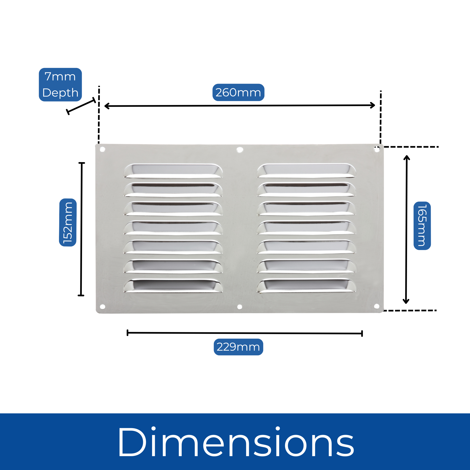 Chrome Finish Louvred Stainless Steel Vent - 9x6 Inch