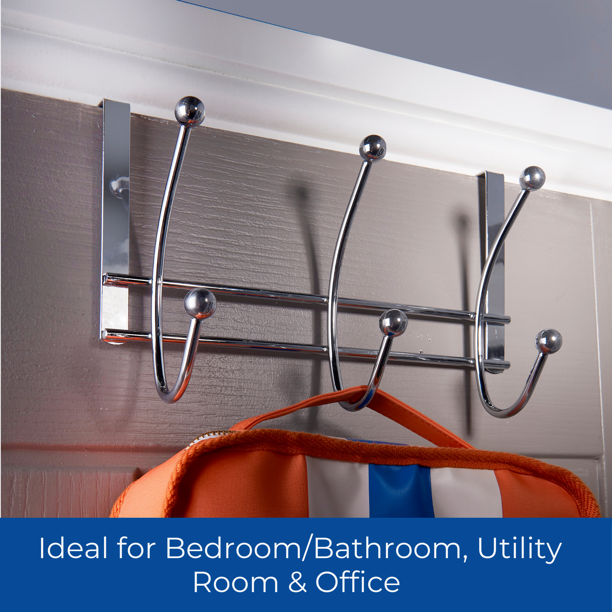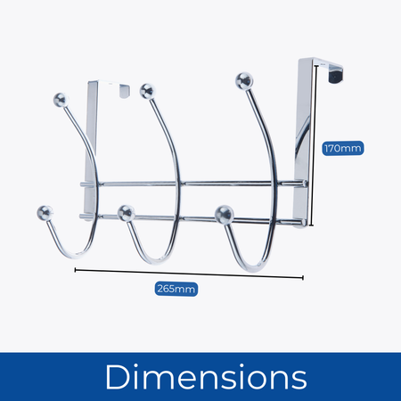 Chrome Over The Door Coat Rack - 3 Double Hooks