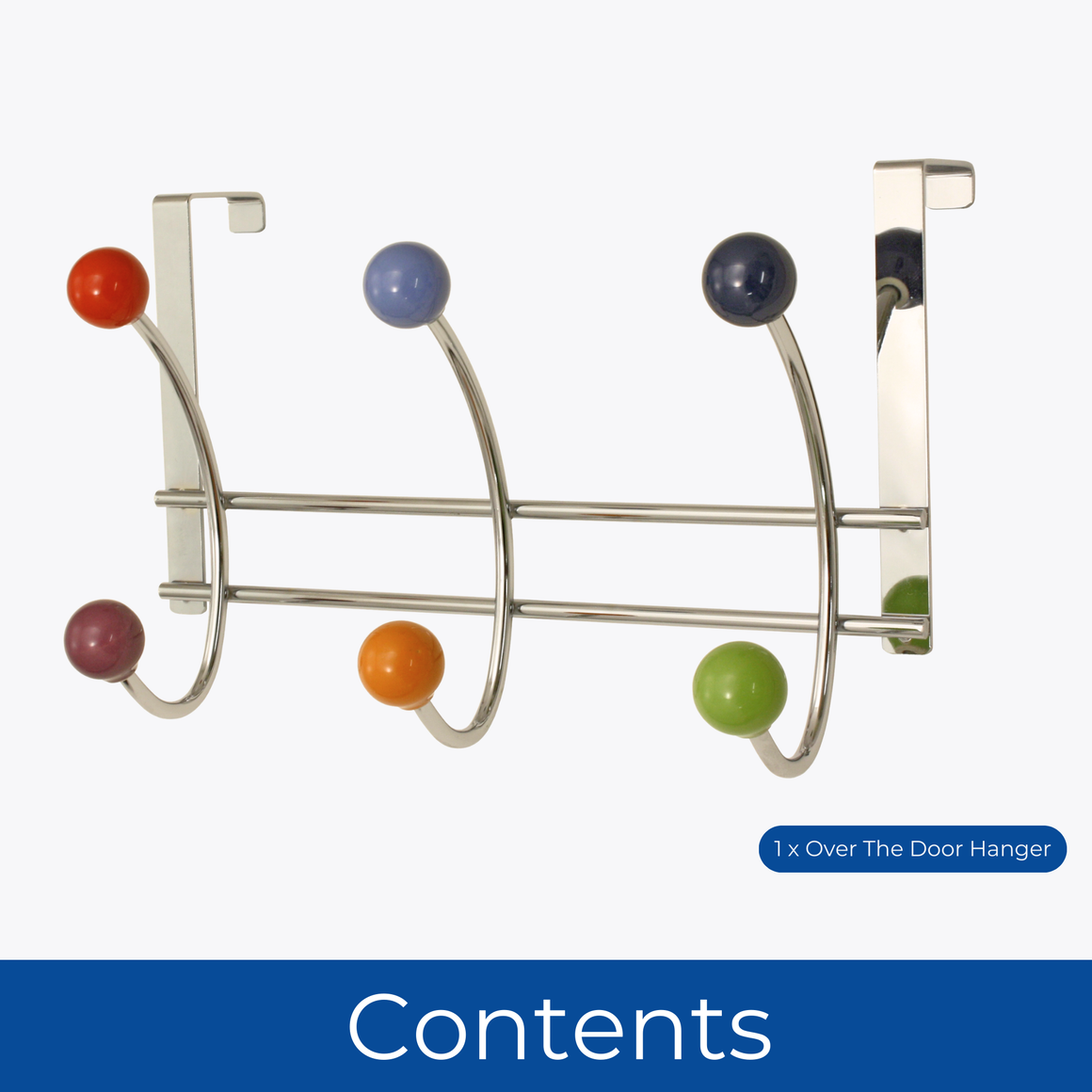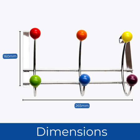 Add a playful yet refined touch to your interior with the Keypak Over The Door Hanger featuring six metal hooks finished with vibrant multi-coloAdd a playful yet refined touch to your interior with the Keypak Over The Door Hanger featuring six metal hooks finished with vibrant multi-coloured ceramic ball ends. Designed for effortless storage and instant charm, this 27cm-wide rack slides neatly over standard doors, bringing convenient organisation to bedrooms, bathrooms, hallways, or closets. The rounded ceramic balls are not only visually appealing but also functional-preventing fabric from catching or stretching while adding a delightful splash of colour. Constructed from sturdy metal with a brushed finish, this over-the-door hook rack is as durable as it is stylish. With no drilling or tools required, it’s an ideal storage solution for renters, families, or those who enjoy updating spaces with practical accessories that also bring character and flair.