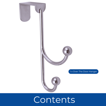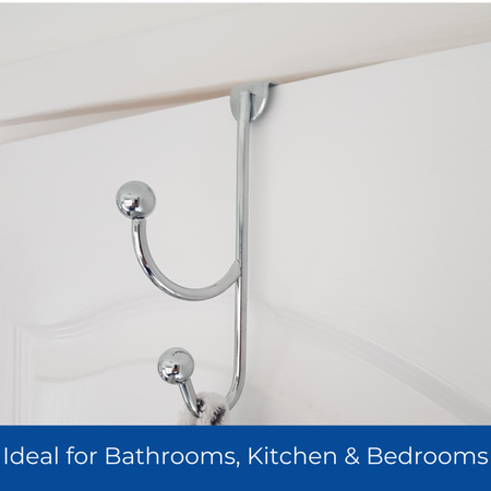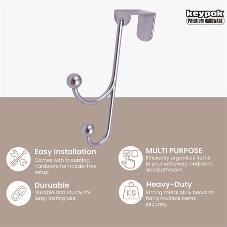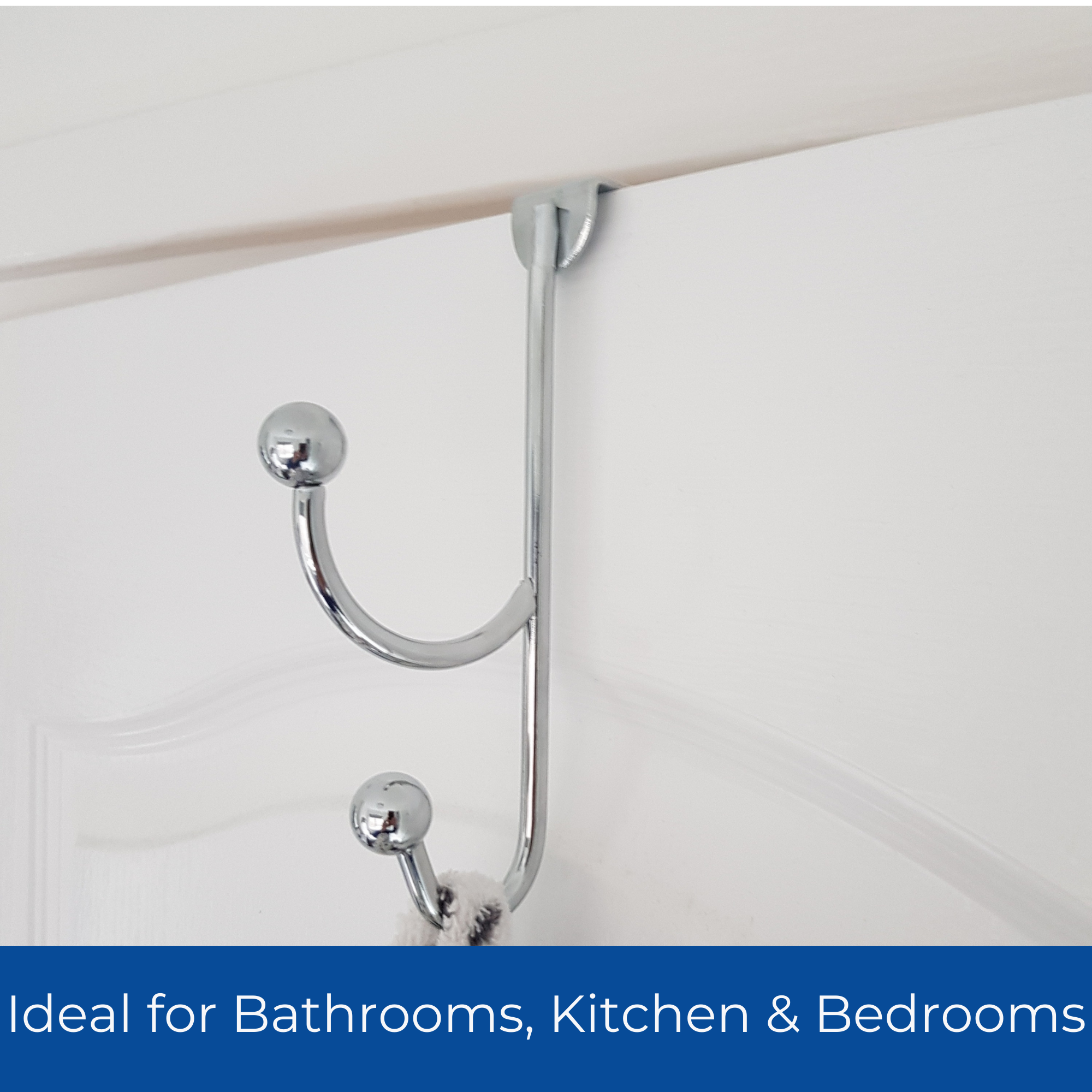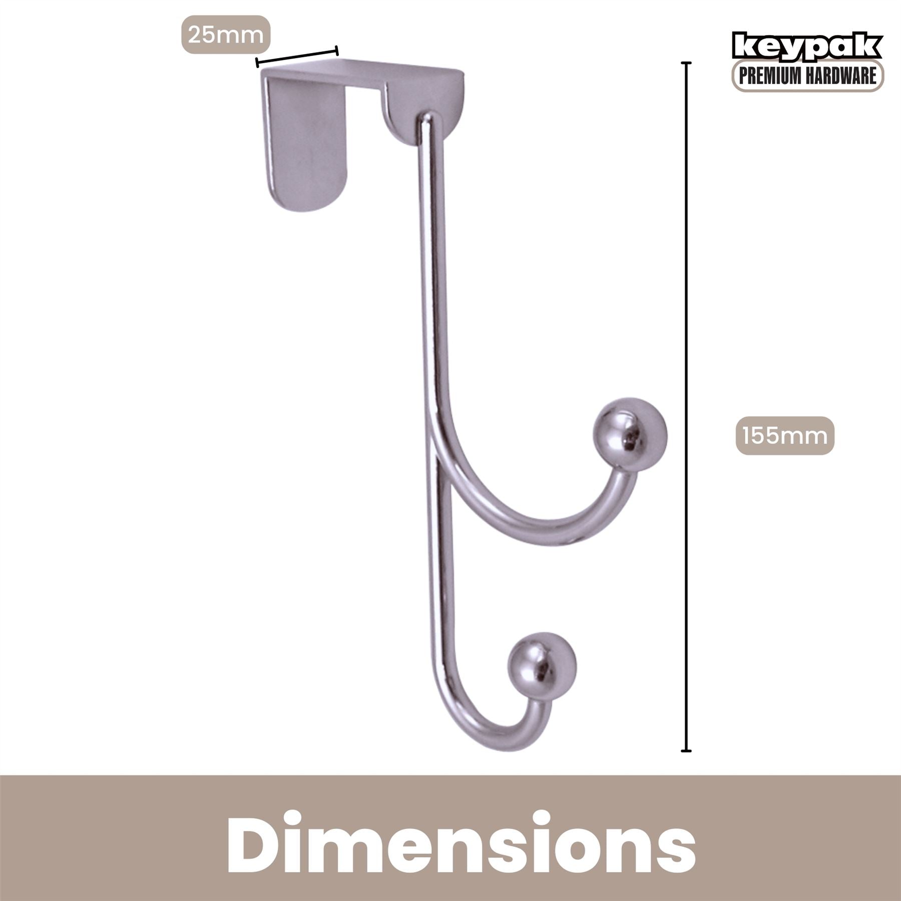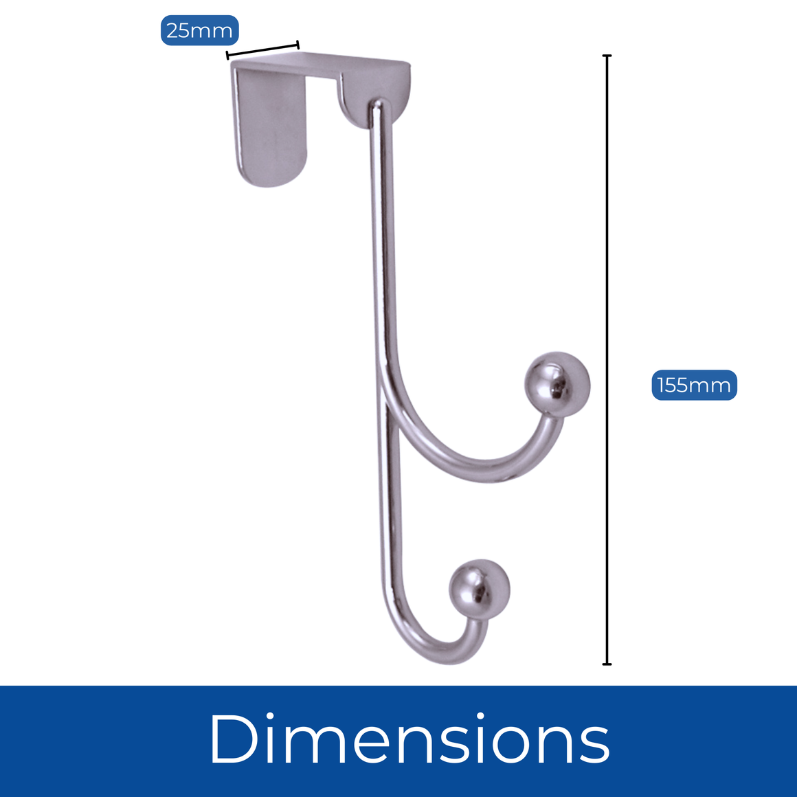COMPACT TWIN-HOOK DESIGN - Polished chrome over-the-door hanger with double hooks, ideal for adding practical storage in tight or high-traffic spaces