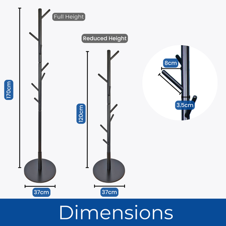 CUSTOMISABLE HEIGHTS - Enjoy the flexibility of customising the heights of this coat stand. You can adjust the height so it is suitable for both adults and children to be used in any space including entryway, bedroom, living room or even an office.