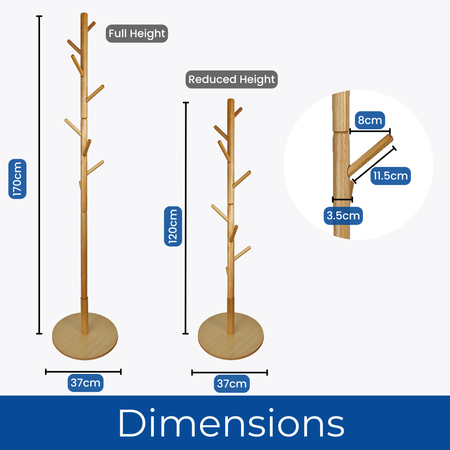 Wooden Round Base Tree Coat Stand - Pine