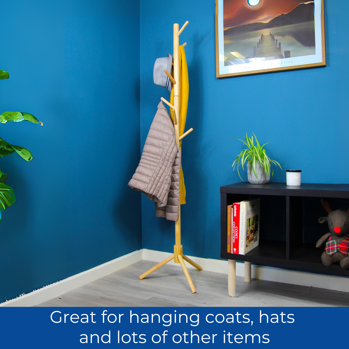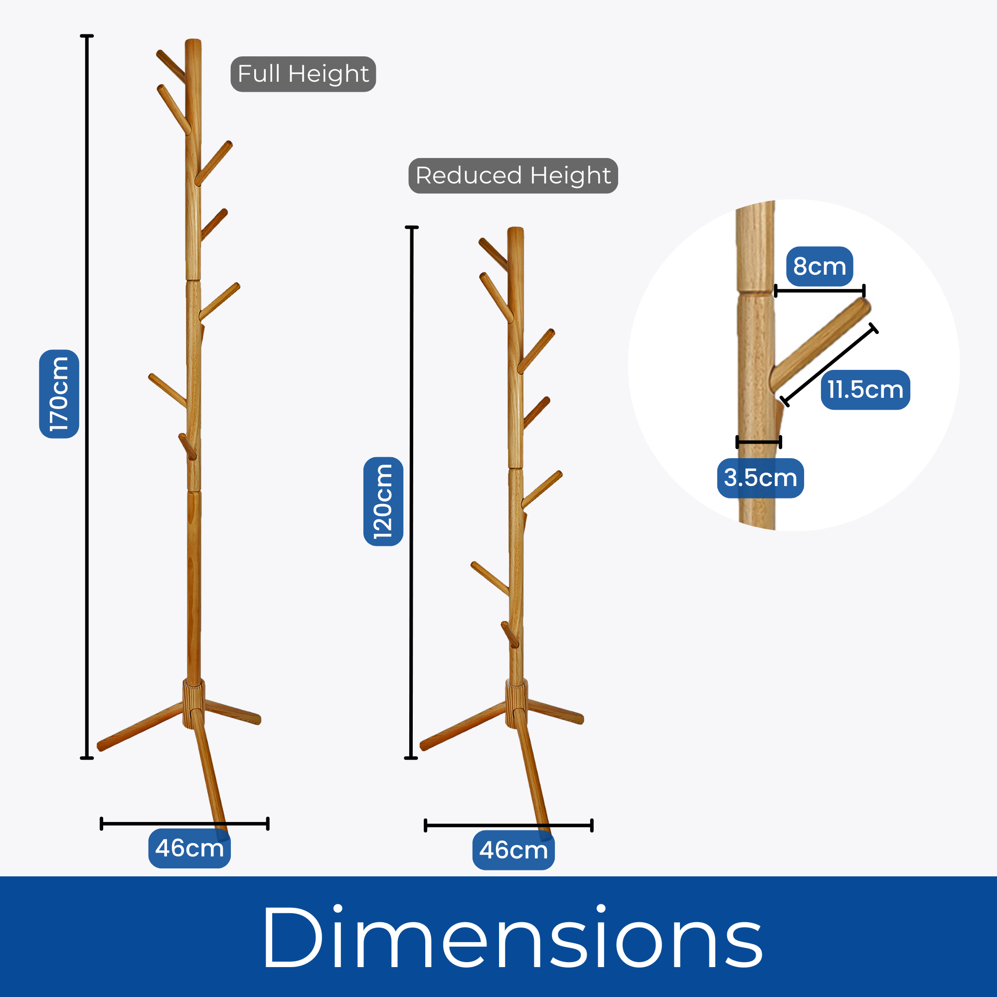 EASY ASSEMBLY – Our Wooden Coat Stand is designed for easy assembly without the need for tools. Simply tighten the base, rod and the hooks together so you can have it ready in no time, saving you valuable time and effort.