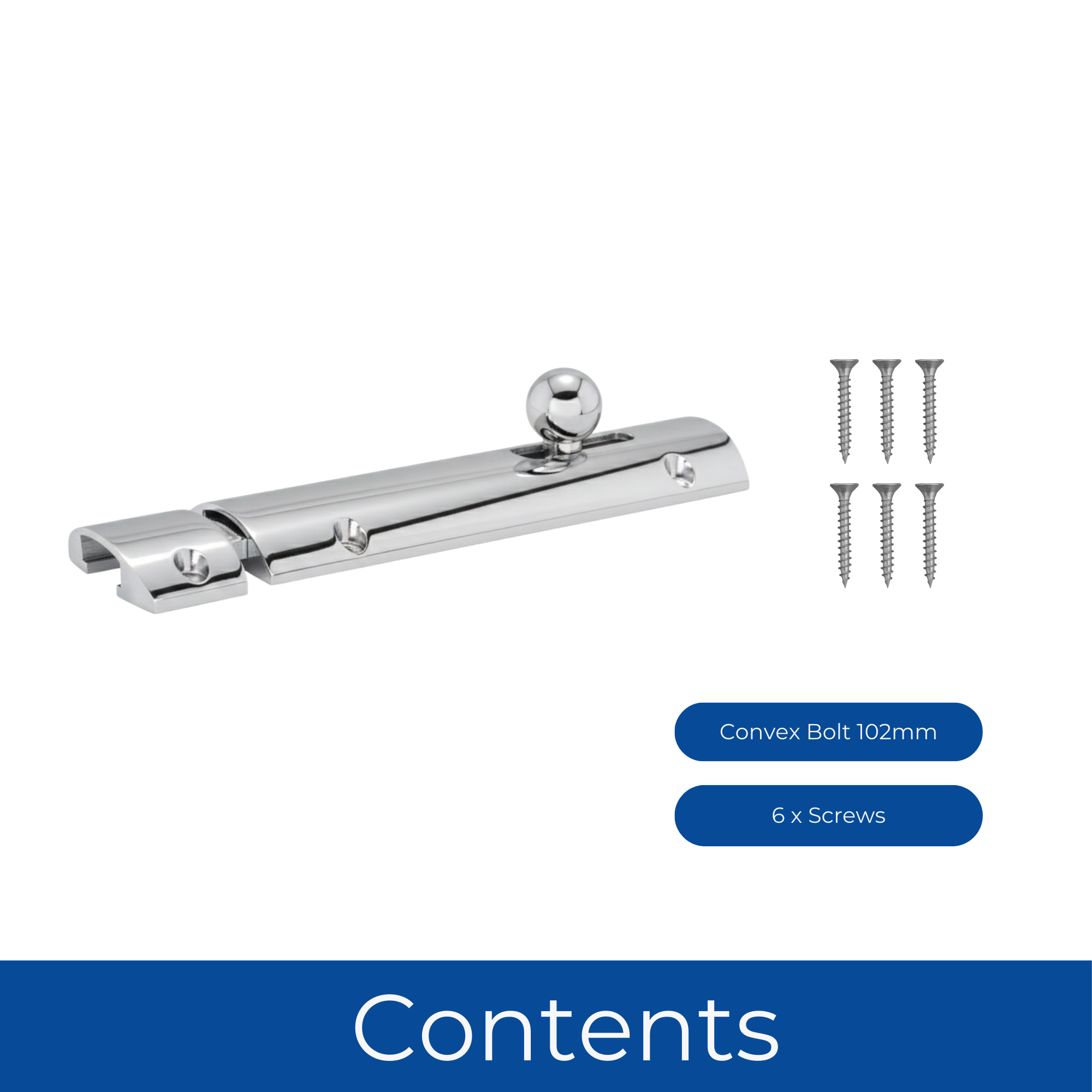 Convex Door Bolt 102mm 1 Pack - Chome Plated