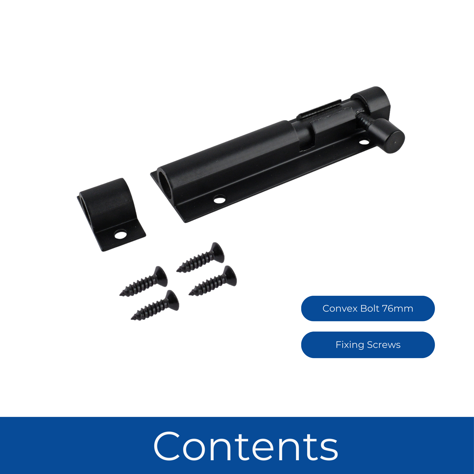 Upgrade your home security and style with the Convex Bolt 76mm in Black (PK1) – the ideal choice for internal doors, cupboards, cabinets, and more. Whether you're securing a wooden door or an MDF cabinet, this high-quality bolt provides reliable strength with a sleek, modern finish. Featuring a decorative convex design and a durable black coating, this internal door bolt not only enhances the safety of your space but also adds a touch of sophistication. It’s perfect for bedroom doors, bathroom cabinets, utility rooms, and storage units, blending seamlessly with most interior hardware. Easy to install and built to last, this 76mm bolt is a practical addition to any home improvement project. Whether you're renovating or replacing old fittings, the Convex Door Bolt 76mm offers an unbeatable combination of security, style, and simplicity.
