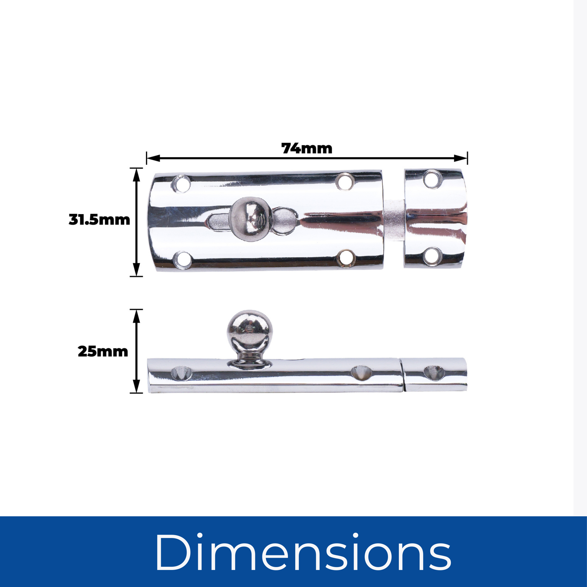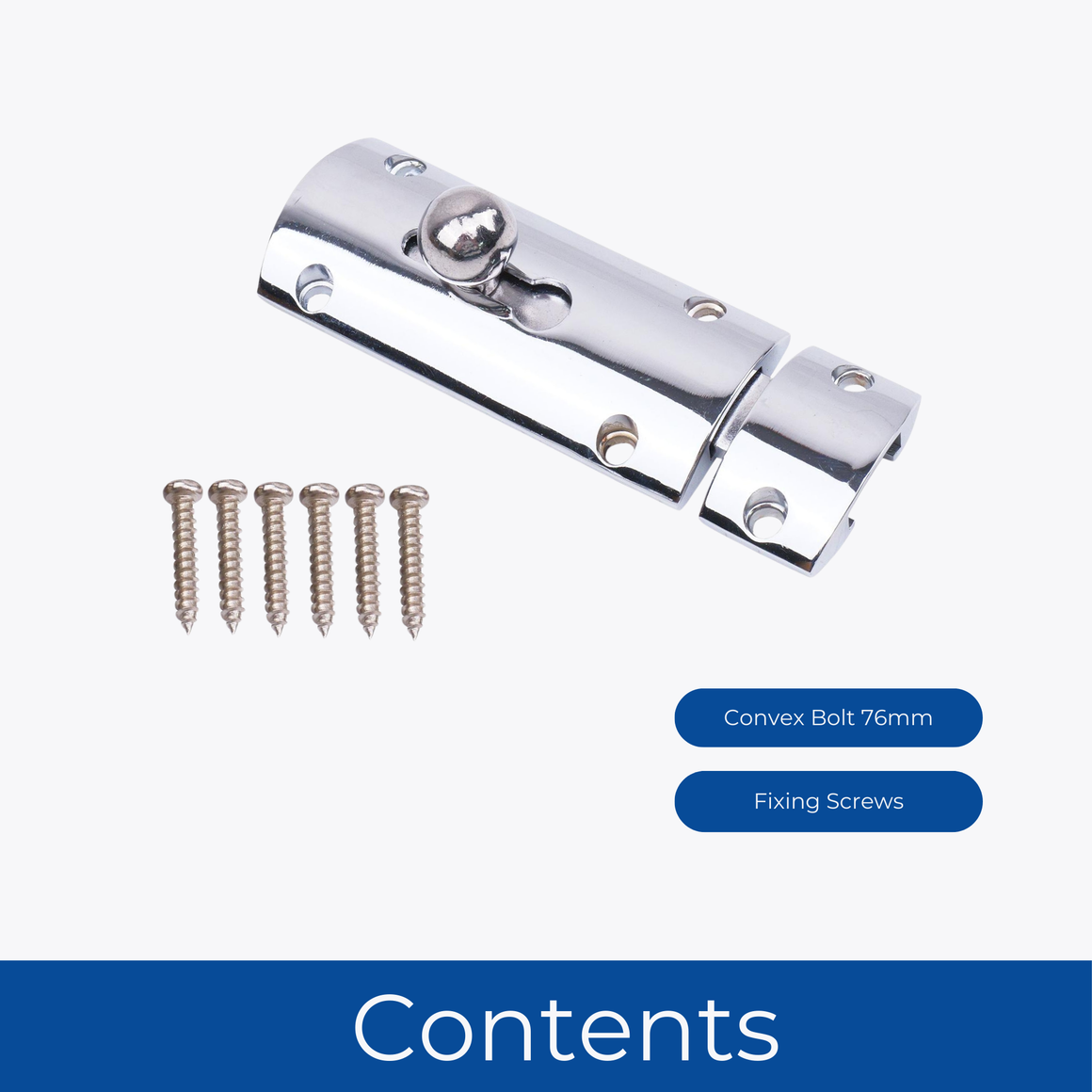 Convex Door Bolt 76mm 1 Pack - Chrome Plated