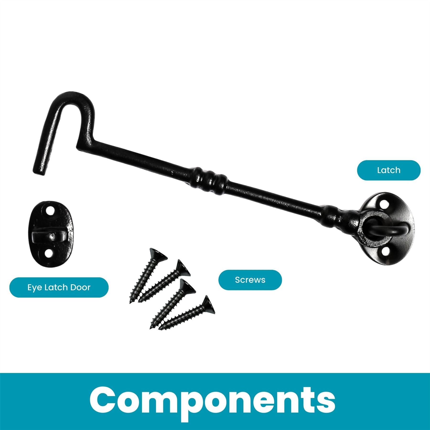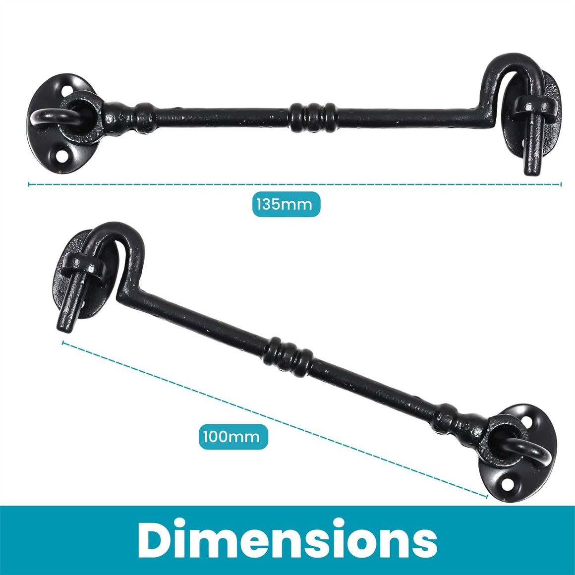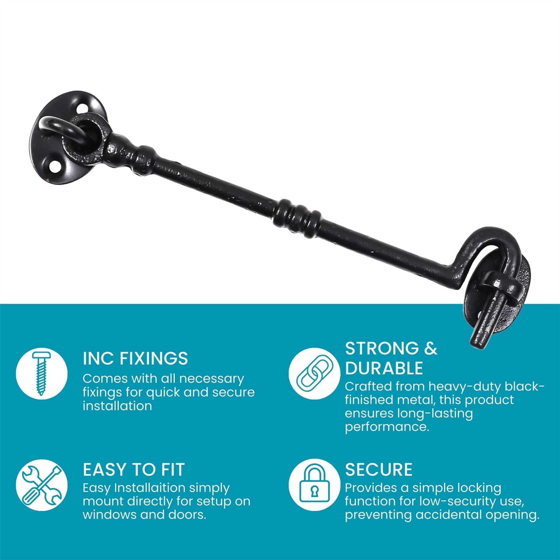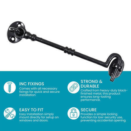 SECURE DESIGN - Features a hook and eye mechanism that ensures reliable latching and unlatching for everyday use. This robust design provides a secure closure, keeping doors, gates, and other fixtures firmly in place. Ideal for frequent use, it offers both ease of operation and peace of mind, ensuring dependable security over time.
