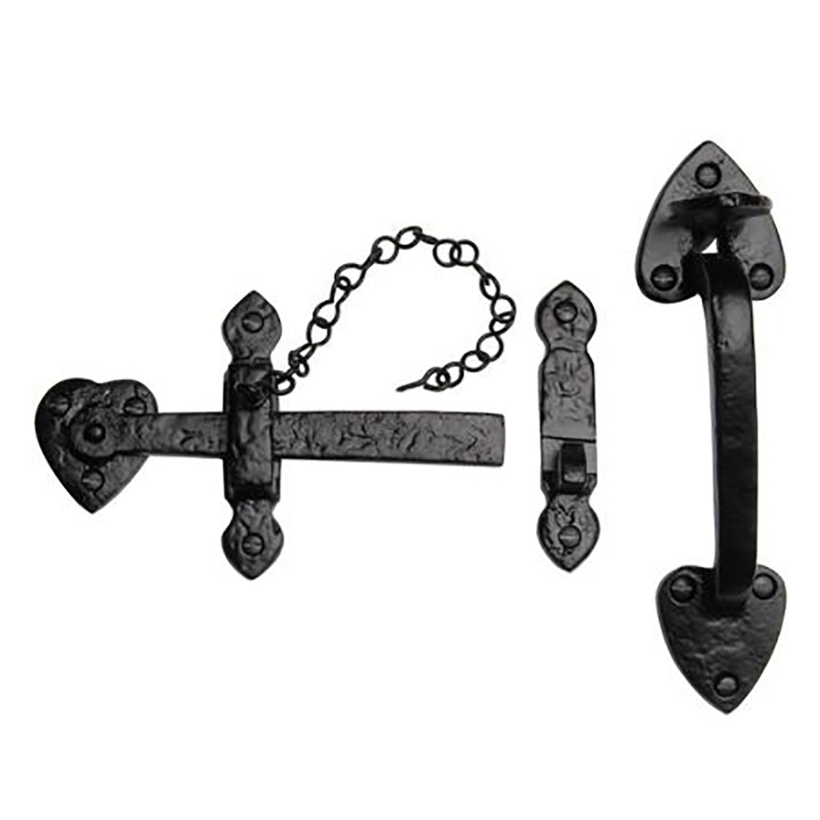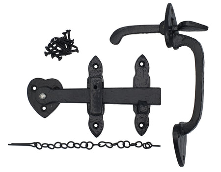 THUMB LATCH & CHAIN - This thumb latch combines quaint heart shaped fixing plates with the robust, durability of cast iron.