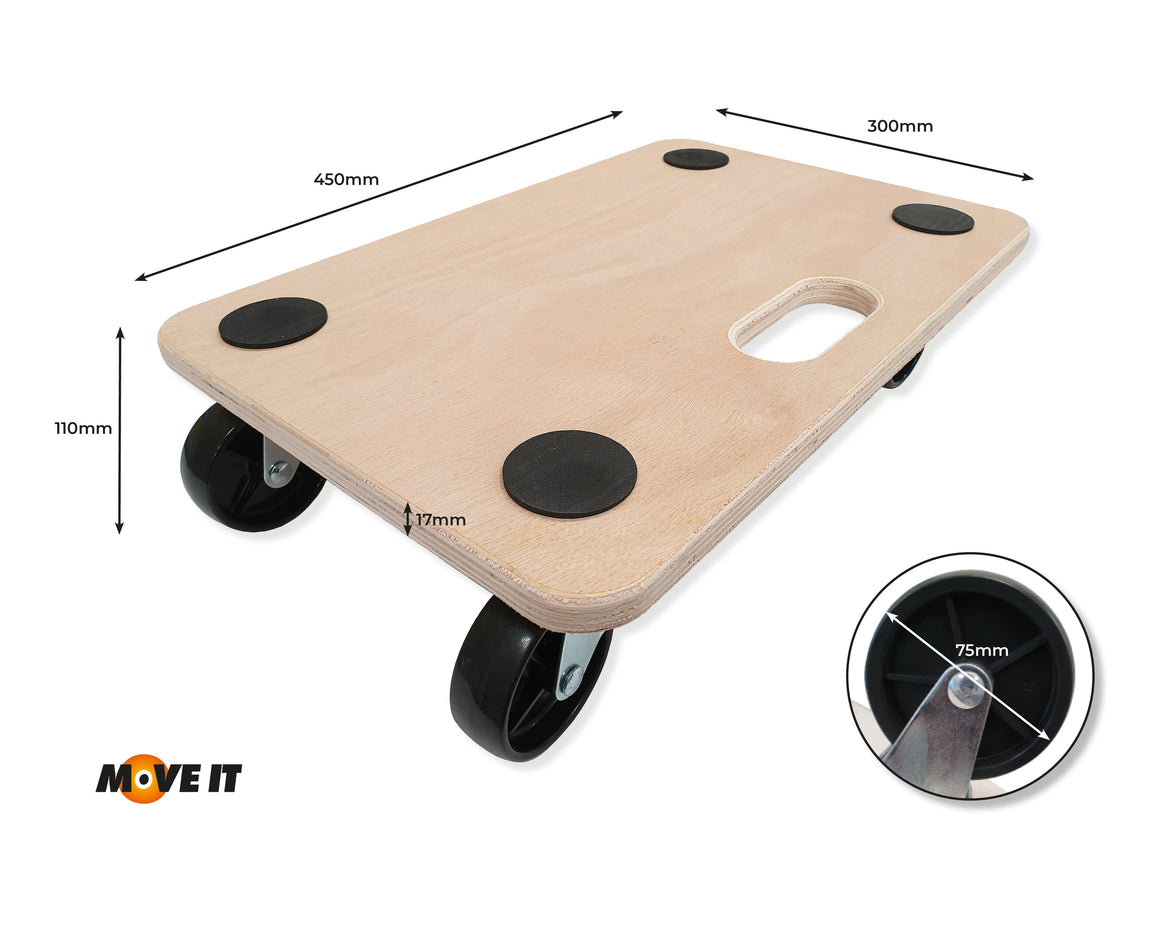 Unlike MDF models, our dolly is constructed from sturdy plywood, ensuring exceptional strength and durability. Anti-slip grip pads in each corner add an extra layer of security, keeping your items firmly in place during transit.
